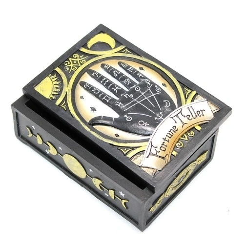 POLYESTER EL TASARIMLI KUTUÜrün ÖzellikleriPolyester el tasarımlı kutu, mistik ve spiritüel dekorasyonu sevenler için özel olarak tasarlanmıştır. Üzerindeki el figürü, astrolojik ve fal sembolleri ile detaylandırılmış olup esrarengiz bir atmosfer yaratır. Dayanıklı polyester malzemeden üretilmiş olup uzun ömürlü kullanım sunar. Takı, tarot kartları veya özel eşyalarınızı saklamak için ideal bir kutudur. Şık ve etkileyici tasarımıyla mistik aksesuar koleksiyonlarına mükemmel bir eklentidir.Paket İçeriği1 Adet Polyester El Tasarımlı Kutu