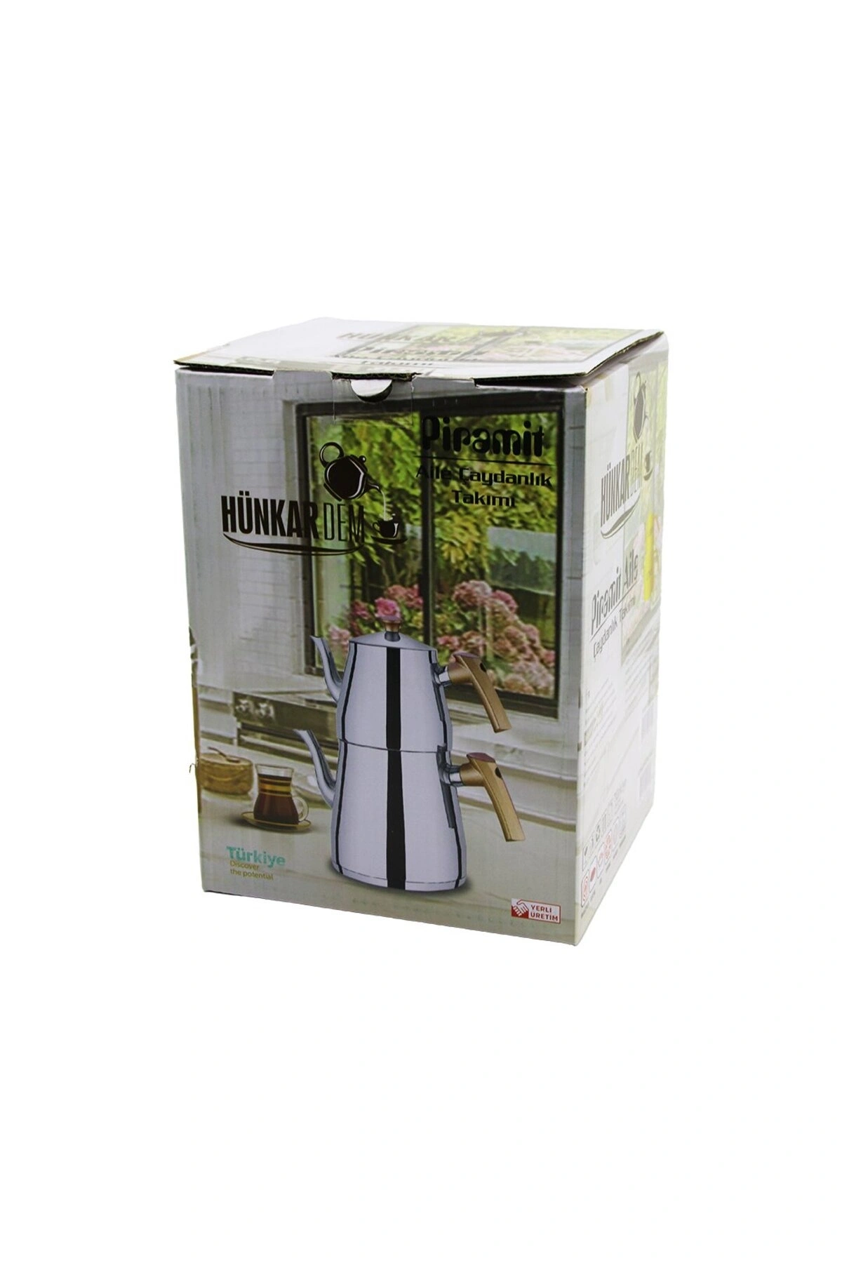 PİRAMİT ORTA BOY ÇELİK ÇAYDANLIK SETİ - TAKIMI RENKLİ BAKALİT KULP ÜST DEMLİK : 1.1LT - ALT SULUK: 2