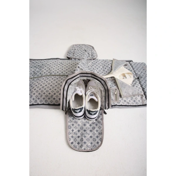 PRATİK ELBİSE KILIFI SEYAHAT ÇANTASIÜrün ÖzellikleriPratik elbise kılıfı seyahat çantası, iş seyahatlerinde, düğünlerde veya özel davetlerde kıyafetlerinizi kırışmadan ve güvenle taşımanızı sağlar. Akıllı tasarımı sayesinde hem elbise kılıfı hem de seyahat çantası işlevi sunar. Geniş iç hacmi ile takım elbise, gömlek, elbise ve ayakkabılarınızı düzenli şekilde taşıyabilir, yan ceplerinde yer alan ekstra bölmelerle küçük eşyalarınızı da kolayca organize edebilirsiniz.Çanta, dayanıklı malzemesi ile uzun ömürlü kullanım sağlarken, katlanabilir yapısı sayesinde kompakt hale gelerek yerden tasarruf etmenize yardımcı olur. Ayakkabı bölmesi ve yer kaplamayan ekstra ürün cepleri ile işlevsellik sunar. Tekerlekli valizlerin üzerine sabitlenebilen arka kayış detayı, seyahatlerde kolay taşıma imkânı verir.Modern tasarımı ve fonksiyonel yapısı ile bu elbise kılıfı seyahat çantası, özellikle iş insanları, sık seyahat edenler ve özel günlerinde şıklığından ödün vermek istemeyenler için ideal bir tercihtir.Paket İçeriği1 adet Pratik Elbise Kılıfı Seyahat Çantası