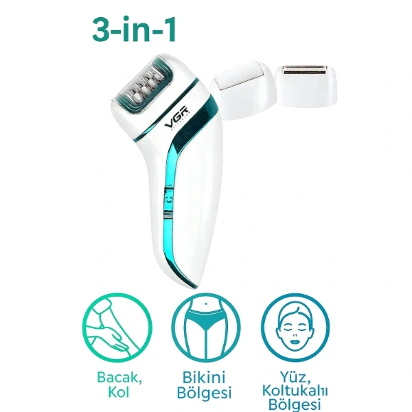 PROFESYONEL 3 BAŞLIKLI EPİLASYON ALETİÜrün ÖzellikleriProfesyonel 3 Başlıklı Epilasyon Aleti, farklı bölgeler için özel olarak tasarlanmış üç farklı başlığı sayesinde pratik ve etkili bir kullanım sunar. Yüz, bacak, koltuk altı, bikini bölgesi ve hassas bölgelerde kullanılabilir. Döner epilasyon başlığı istenmeyen tüyleri kökünden alarak pürüzsüz bir cilt sağlar. Tıraş başlığı hızlı ve kolay kullanım için idealdir, topuk törpü başlığı ise ayak bakımında etkili sonuç verir. Ergonomik tasarımı sayesinde elde rahat kavrama sağlar ve uzun süreli kullanımda bile konfor sunar. Şarjlı yapısıyla kablo karmaşası olmadan pratik kullanım imkânı sunar.Paket İçeriği1 adet Profesyonel 3 Başlıklı Epilasyon Aleti