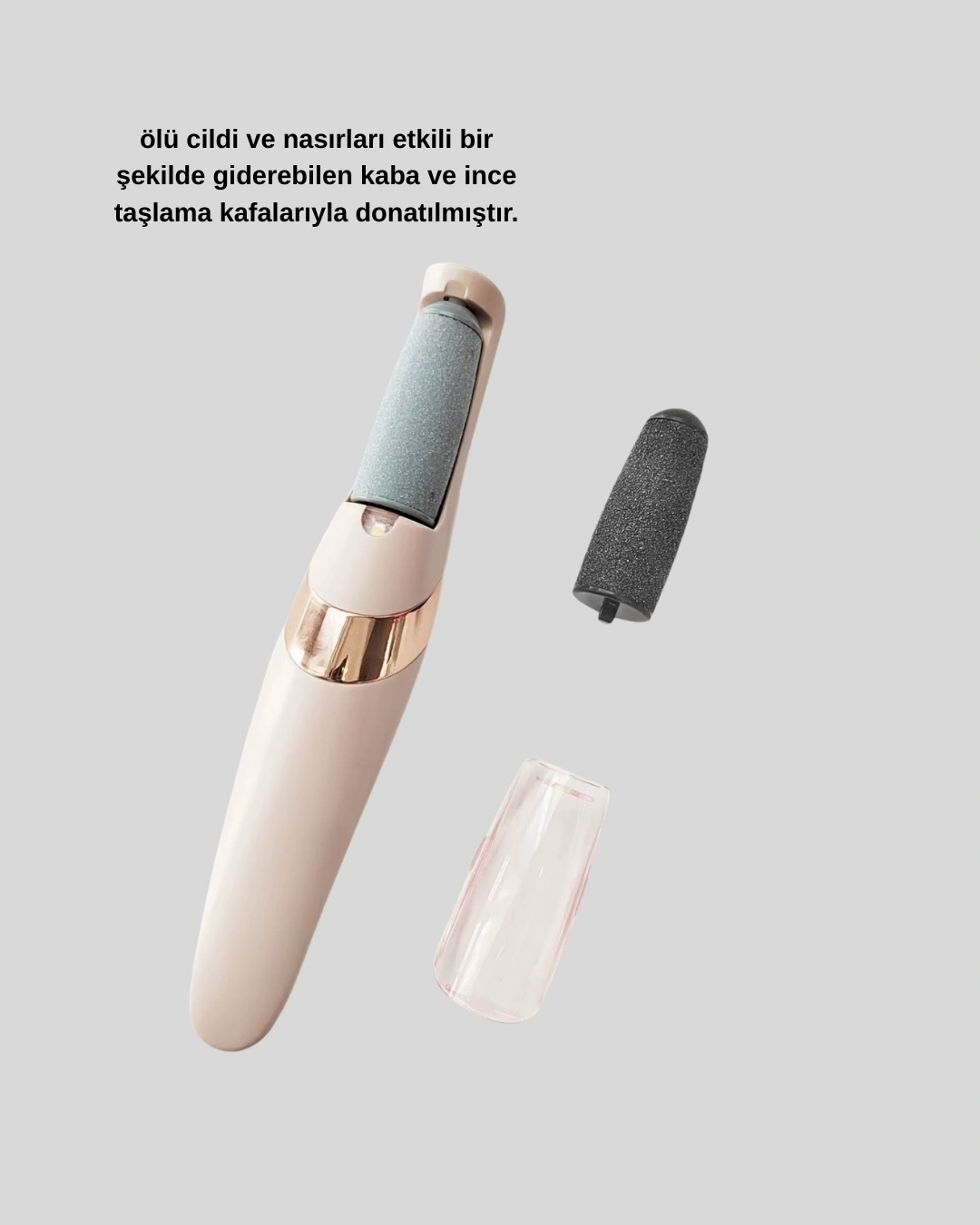 Kallus ve nasır giderici elektrikli ayak törpüsü, ayağın sertleşmiş yüzeyine uyum sağlayan 360° etkili öğütme sistemi ile çalışır. Ayakta çatlak görünümünü azaltmaya ve daha yumuşak bir cilt dokusu elde etmeye yardımcı olur.Kaba ve ince taşlama başlıkları, farklı bakım ihtiyaçları için esnek kullanım imkânı sunar. Düzenli bakım ile daha sağlıklı ayak görünümü sağlar.
