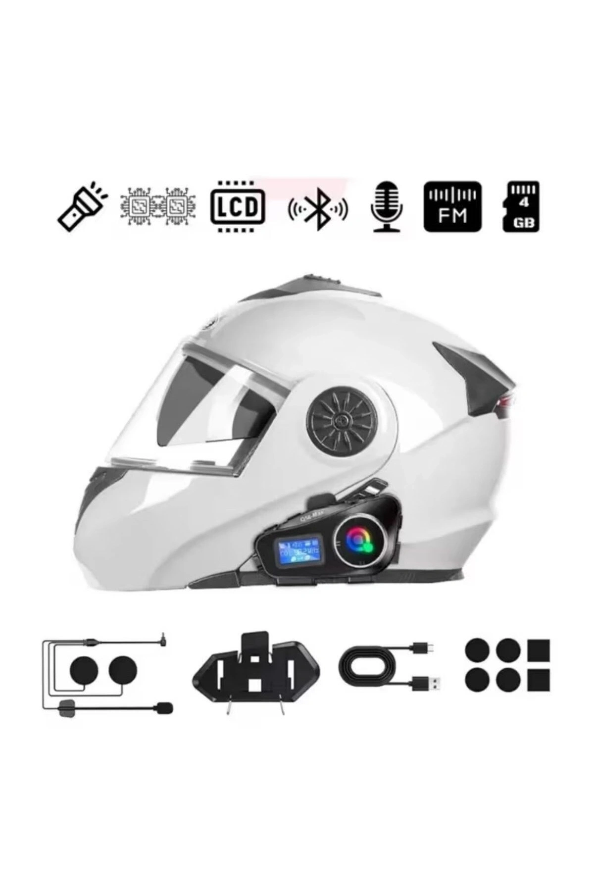 Q58 Motosikletler İçin Fener Özellikli SD Kart Bölümlü LCD Ekranlı Kablosuz Bluetooth Kulaklık – Suya Dayanıklı Kask Kulaklığı Motosiklet sürüş deneyiminizi bir üst seviyeye taşıyın! Kablosuz Bluetooth Kask Kulaklığı, gelişmiş teknolojiyi konforla birleştirerek hem güvenli hem de keyifli bir yolculuk sunar.; LCD ekranı, SD kart desteği, dahili feneri ve suya dayanıklı yapısıyla yolda ihtiyaç duyduğunuz tüm özellikleri bir arada sunar.; LCD Ekranlı Akıllı Kontrol Paneli: Üzerinde bulunan LCD ekran sayesinde pil durumunu, şarkı geçişlerini, Bluetooth bağlantısını ve SD kart modunu kolayca takip edebilirsiniz.; Karmaşık tuş kombinasyonlarına gerek kalmadan tüm işlemleri tek bakışta kontrol edebilirsiniz.; Kablosuz Bluetooth Bağlantı Kolaylığı: Güçlü Bluetooth bağlantı teknolojisi sayesinde telefon, tablet veya navigasyon cihazlarınızla anında eşleşir.; Sürüş sırasında gelen çağrıları kolayca cevaplayabilir, müzik dinleyebilir veya navigasyon yönlendirmelerini net bir şekilde duyabilirsiniz.; Düşük gecikmeli ve kesintisiz ses iletimi sayesinde kaliteli bir ses deneyimi yaşarsınız.; SD Kart Desteği – Telefonsuz Müzik Keyfi: Kask Kulaklığı, dahili SD kart girişi ile telefona ihtiyaç duymadan müzik dinleme imkânı sunar.; Kartınıza yüklediğiniz MP3 dosyalarıyla uzun yolculuklarda kesintisiz müzik keyfi yaşayabilirsiniz.; Fener Özelliği – Gece Güvenliği İçin Ekstra Aydınlatma: Entegre mini LED fener, gece sürüşlerinde veya karanlık ortamlarda ekstra güvenlik sağlar.; Yol kenarında durduğunuzda ya da düşük ışıklı ortamlarda pratik bir aydınlatma çözümüdür.; Suya ve Toza Dayanıklı Dayanıklı Tasarım: IPX seviyesinde suya ve toza karşı koruma sağlayan yapısı sayesinde yağmurda, rüzgarda veya tozlu yollarda sorunsuz kullanım imkânı sunar.; Dayanıklı malzeme yapısı, uzun ömürlü ve güvenli sağlar.; Gürültü Engelleme Teknolojisi: Akıllı Noise Reduction teknolojisi, motor sesi, rüzgar ve dış ortam gürültüsünü azaltarak daha net bir ses deneyimi sunar.; Müzik dinlerken veya görüşme yaparken sesin bozulmadan iletilmesini sağlar.; Ergonomik ve Rahat Kask Uyumlu Tasarım: Kask içine kolayca monte edilir ve rahatsız etmeden kullanım sağlar.; Yumuşak kulak yastıkları uzun sürüşlerde bile konforu korur.; Hafif yapısı sayesinde kaskın ağırlığını artırmadan ideal denge sağlar.; Uzun Pil Ömrü ve Hızlı Şarj Desteği: Yüksek kapasiteli bataryası sayesinde tek şarjla uzun süre kesintisiz kullanım sağlar.; Uzun yolculuklar için idealdir; enerji tasarrufu modu ile pil ömrünü maksimuma çıkarır.