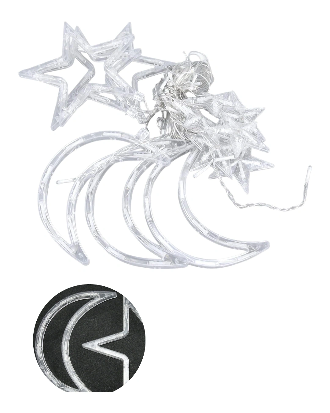 Ramazan dekorasyonu için tasarlanmış büyük ay yıldız LED ışık, manevi atmosferi yansıtan zarif bir süsleme ürünüdür. Şeffaf ve parlak yapısı sayesinde ışık dağılımı eşit ve dikkat çekicidir. Ay yıldız figürü, Ramazan ayında en çok tercih edilen dekoratif semboller arasında yer alır. LED ışık sistemi sayesinde geceleri net ve estetik bir aydınlatma sağlar. Ev, balkon, cam önü, vitrin ve iftar sofrası arka planında kullanılabilir. Hafif yapısı sayesinde kolay taşınır ve pratik şekilde monte edilir. Uzun kablo yapısı ve dayanıklı malzemesi ile güvenli kullanım sunar. Hem ev hem ticari mekanlar için ideal bir Ramazan süsüdür.