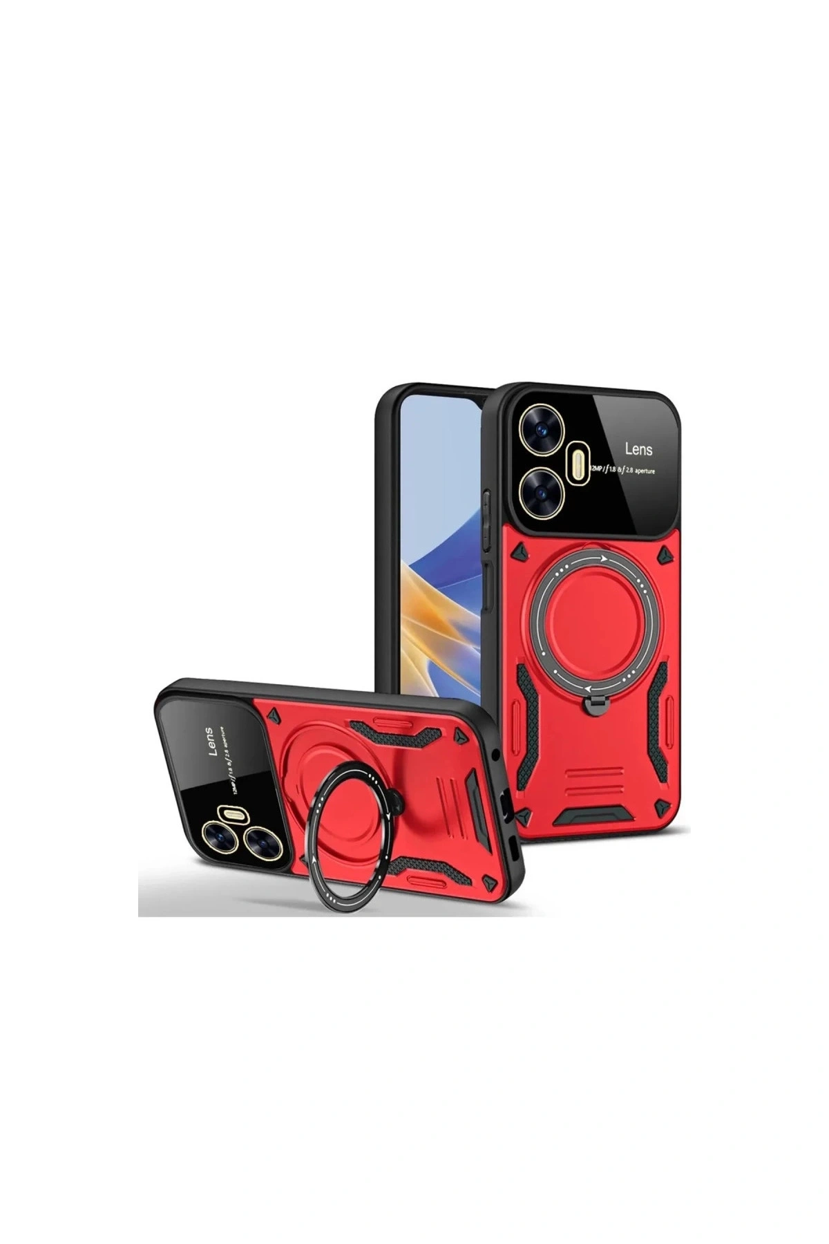 Realme C55 Kılıf Joy Lens Standlı Kapak - Kırmızı