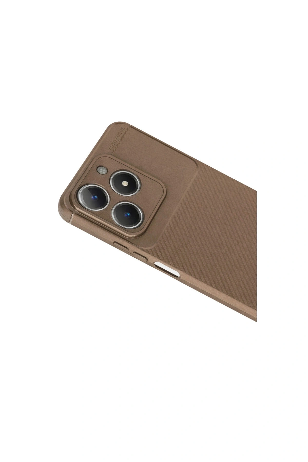 Realme C61 Kılıf Auto Focus Karbon Kapak - Kahverengi