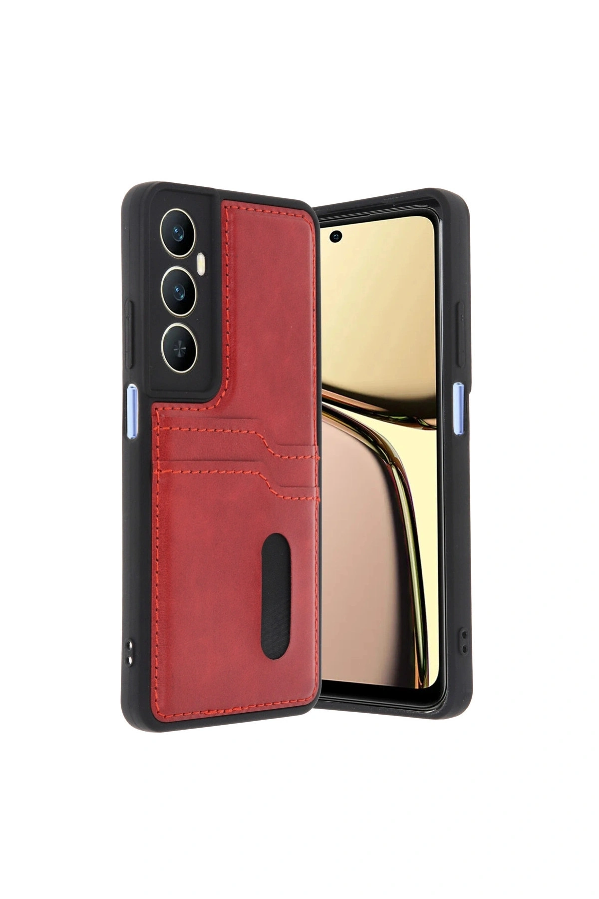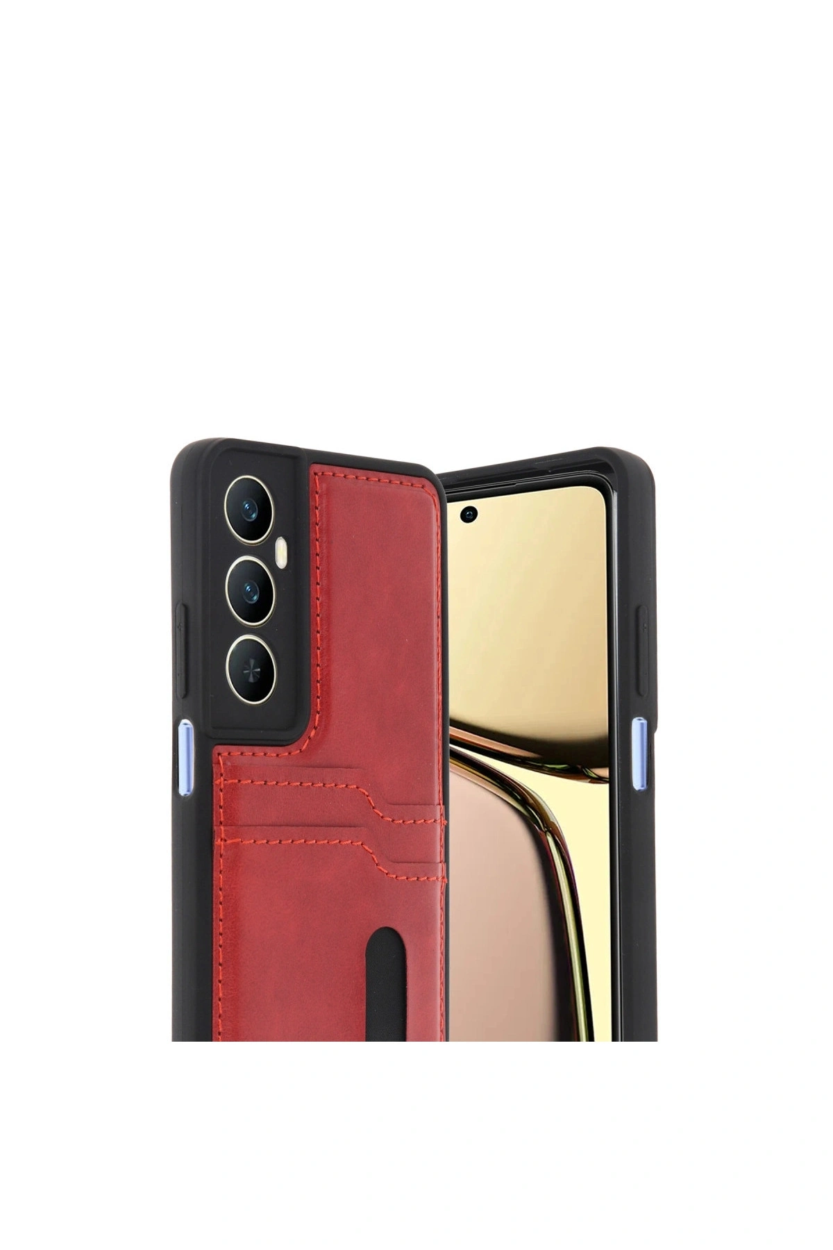 Realme C65 Sara Kartvizitli Deri Kılıf - Kırmızı