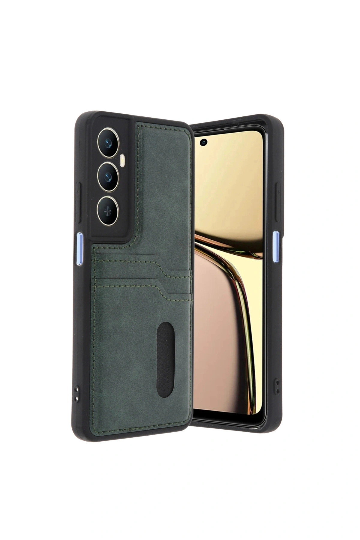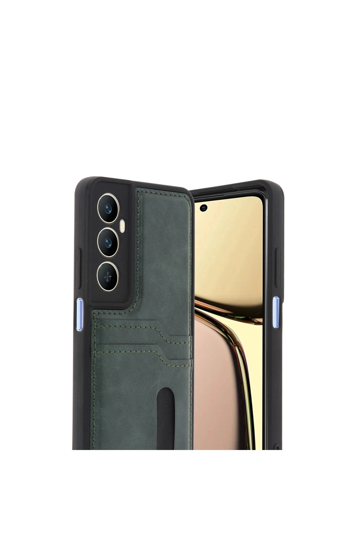Realme C65 Sara Kartvizitli Deri Kılıf - Yeşil