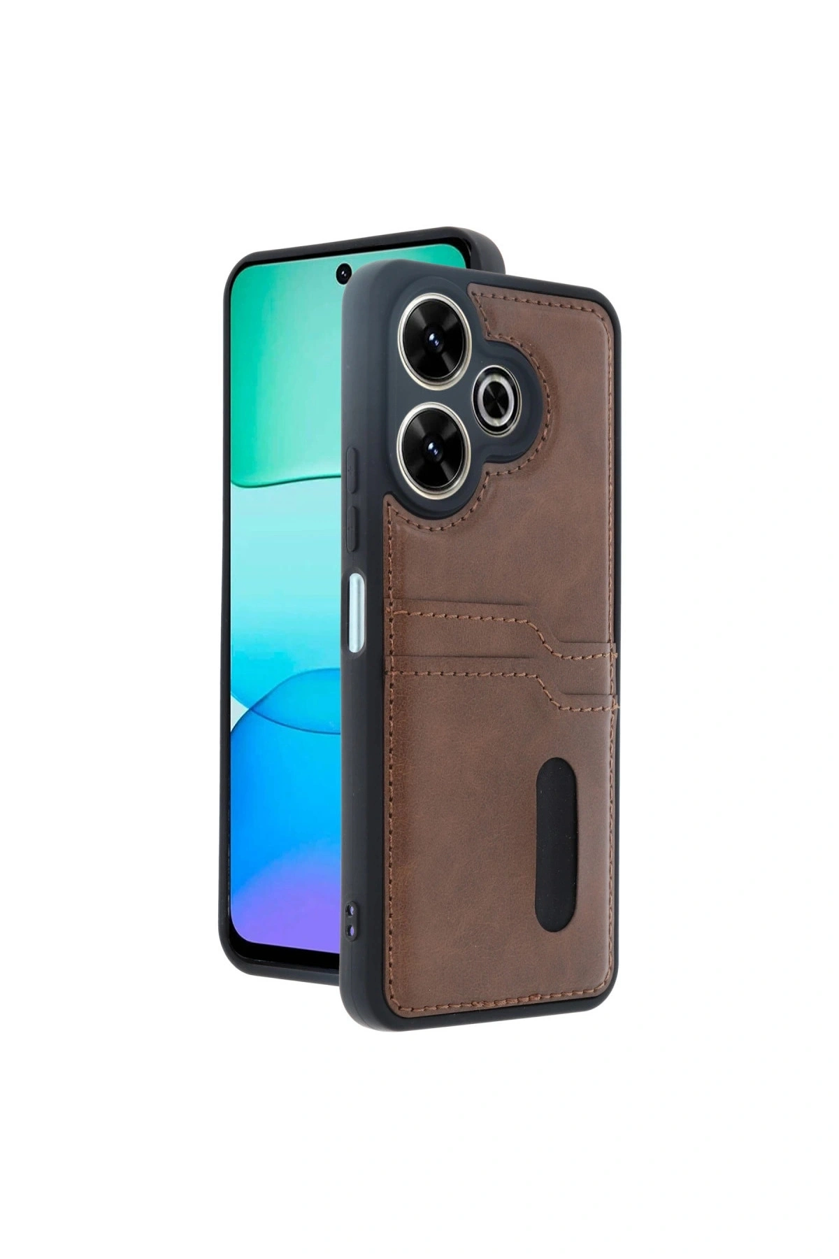 Redmi 13 4g Kılıf Sara Kartvizitli Deri Kılıf - Taba