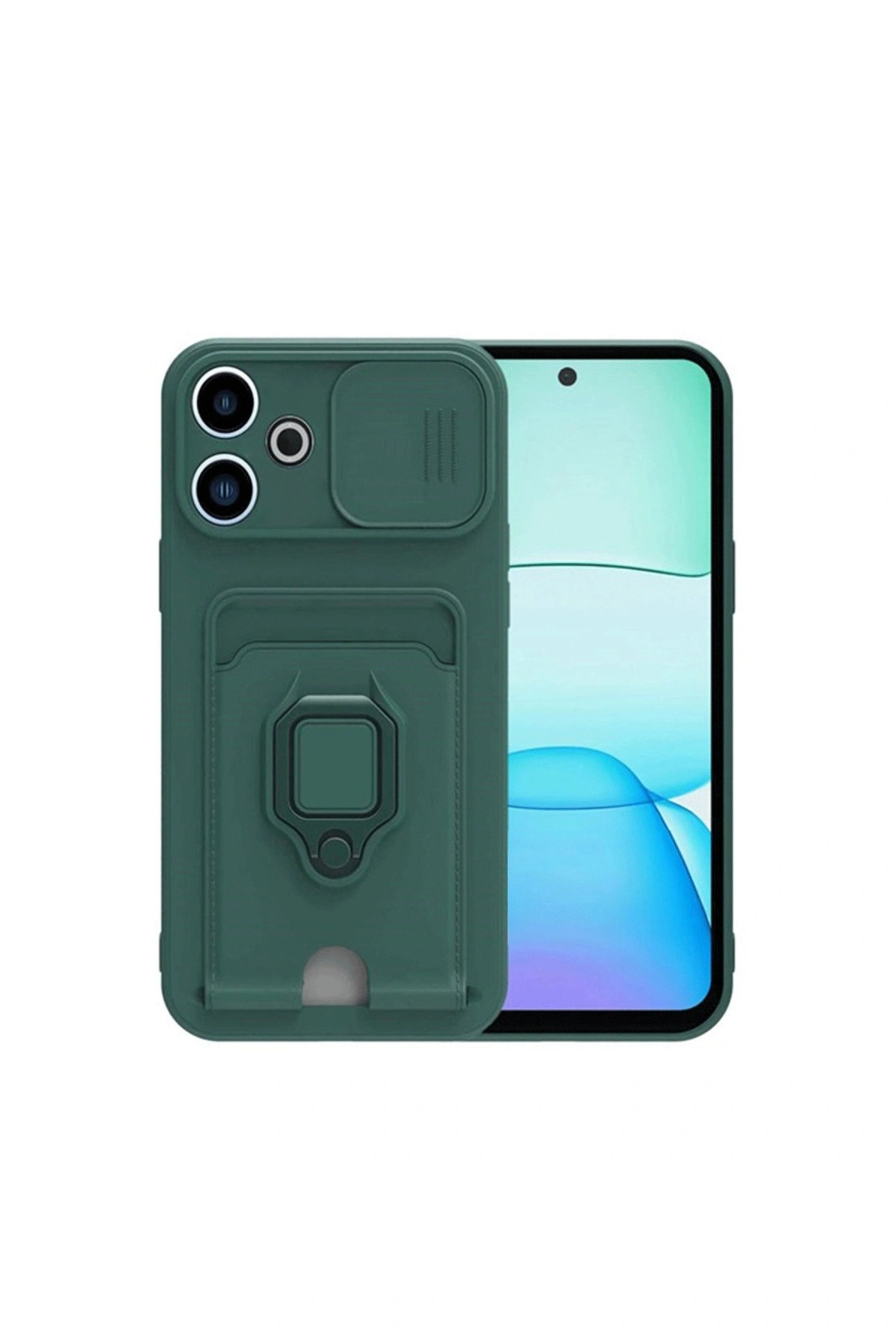Redmi 13 4g Kılıf Zuma Kartvizitli Yüzüklü Silikon - Yeşil