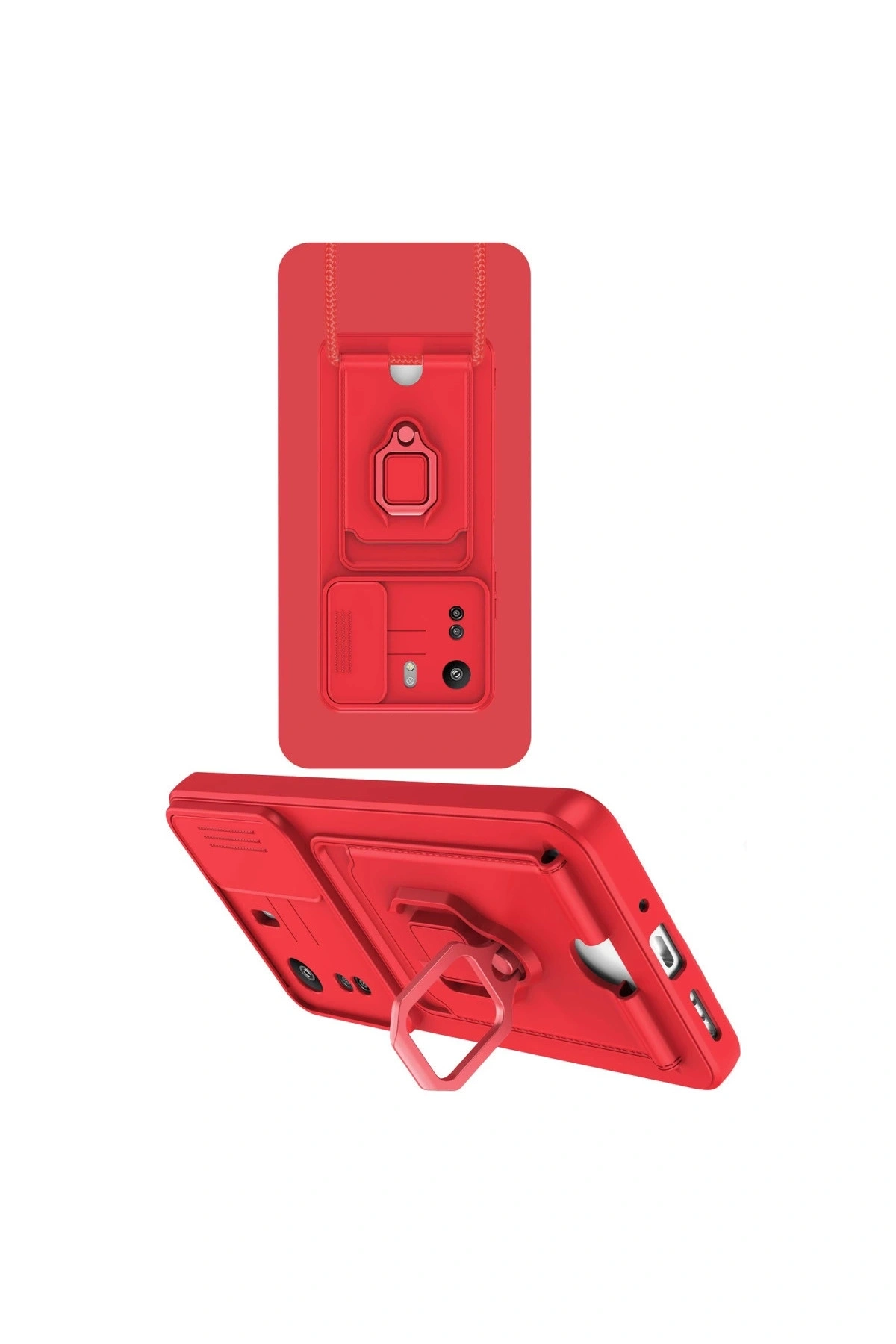 Redmi 13c Kılıf Zuma Kartvizitli Yüzüklü Silikon - Kırmızı