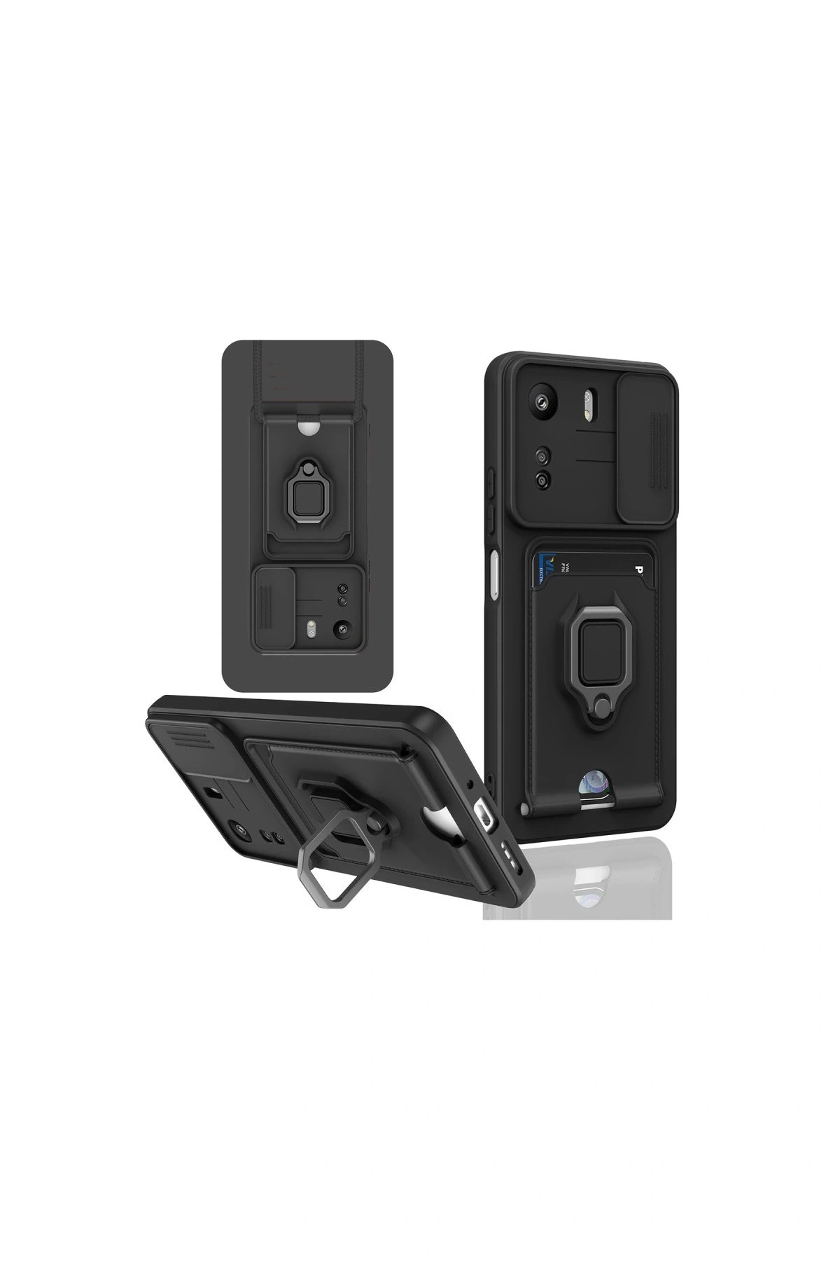 Redmi 13c Kılıf Zuma Kartvizitli Yüzüklü Silikon - Siyah