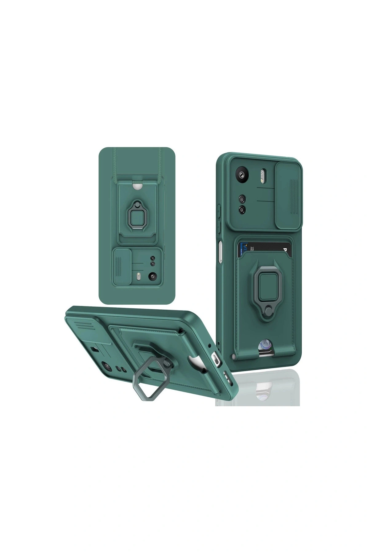 Redmi 13c Kılıf Zuma Kartvizitli Yüzüklü Silikon - Yeşil