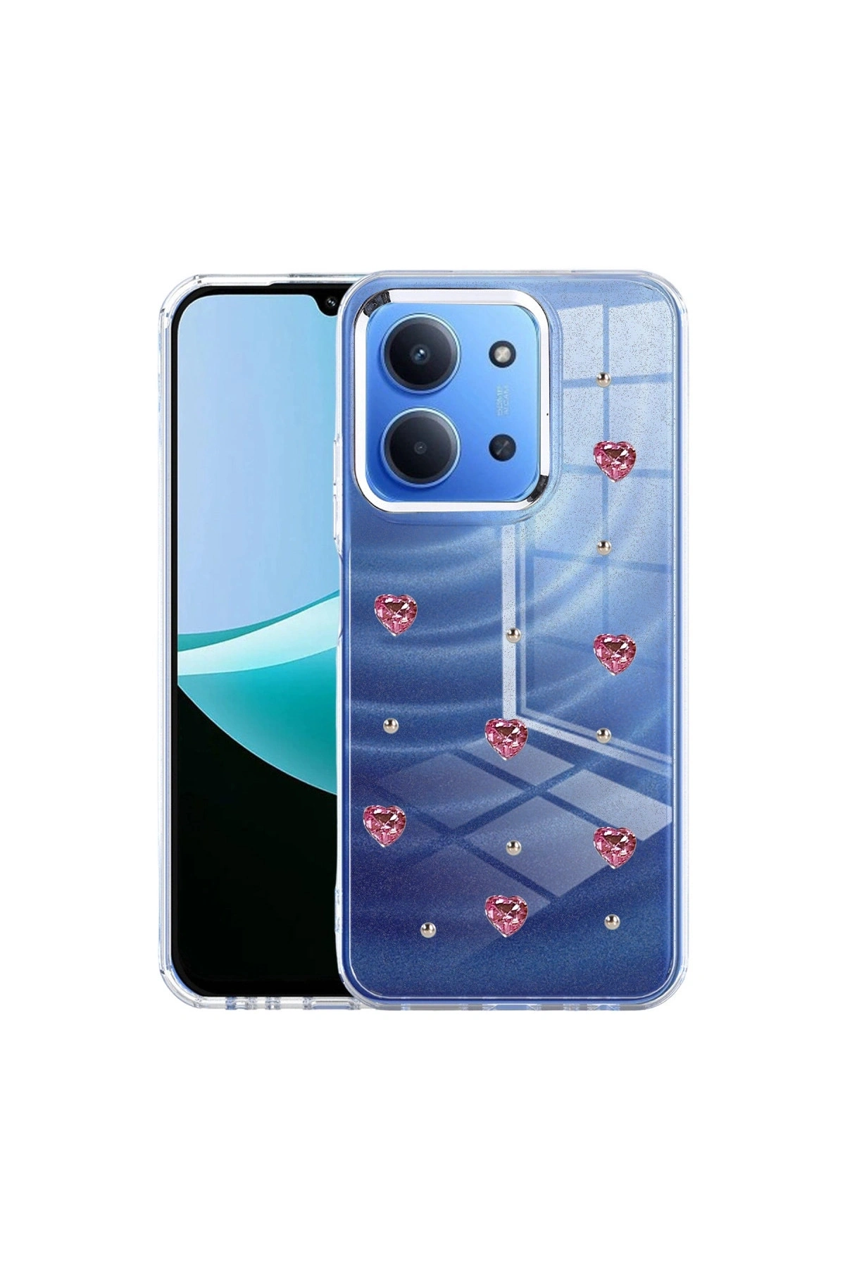 Fiyonk Desenli Kapak ✅ Zarafet ve Koruma Bir AradaFiyonk, yıldız, kelebek, lale, çiçek, kalp ve gül gibi zarif detaylarla süslenmiş bu kapak simli, şeffaf tasarımıyla estetik ve korumayı bir araya getiriyor.; Telefonunuzu yalnızca dış etkenlerden korumakla kalmaz, aynı zamanda ona göz alıcı bir stil kazandırır.; Günlük kullanımda dikkat çeken tasarımı sayesinde cihazınızın şıklığı öne çıkar.; ✅ Üstün Darbe KorumasıEsnek kenar yapısı ve dayanıklı malzemesiyle telefonunuzu darbelerden ve düşmelerden etkili bir şekilde korur.; Simli şeffaf yüzey, hem sağlamlık hem de görselliği bir arada sunarak cihazınızın görünümünü sergilemeye devam eder.; ✅ Konforlu ve Pratik Kullanımİnce ve hafif tasarımıyla telefonunuzu kalınlaştırmadan yüksek koruma sağlar.; Tüm tuşlar, bağlantı noktaları ve kamera çıkıntılarıyla tam uyumludur.; Kaymaz yüzeyi sayesinde elde daha güvenli bir tutuş sunar böylece günlük kullanımda rahatlık ve konfor sağlar.