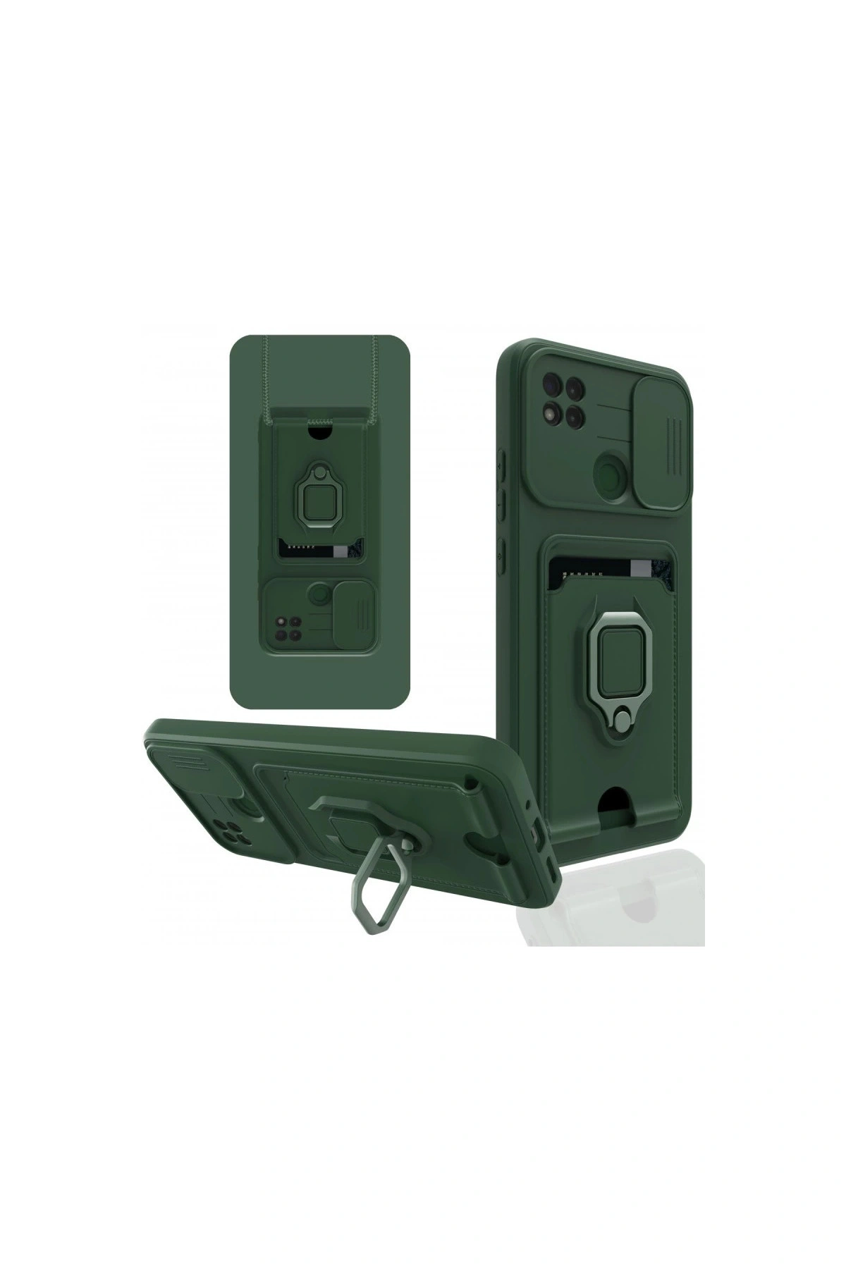 Redmi 9c Kılıf Zuma Kartvizitli Yüzüklü Silikon - Yeşil