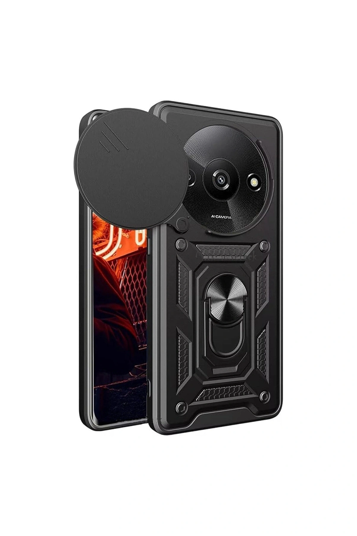 Redmi A3 4g Kılıf Pars Lens Yüzüklü Silikon - Siyah