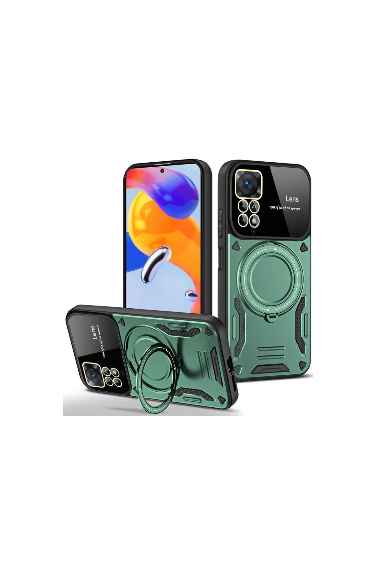 Redmi Note 11 Pro Kılıf Joy Lens Standlı Kapak - Koyu Yeşil