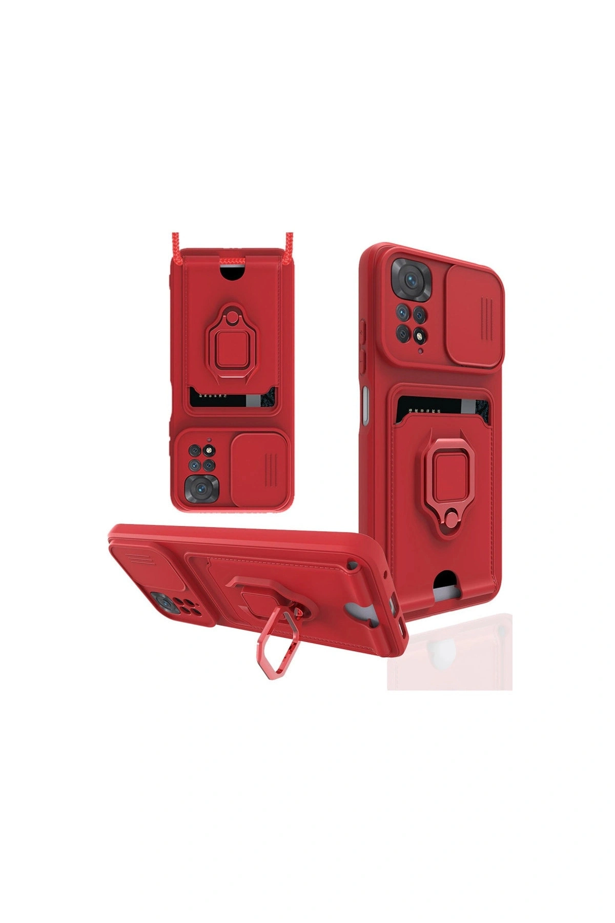 Redmi Note 11 Pro Kılıf Zuma Kartvizitli Yüzüklü Silikon - Kırmızı
