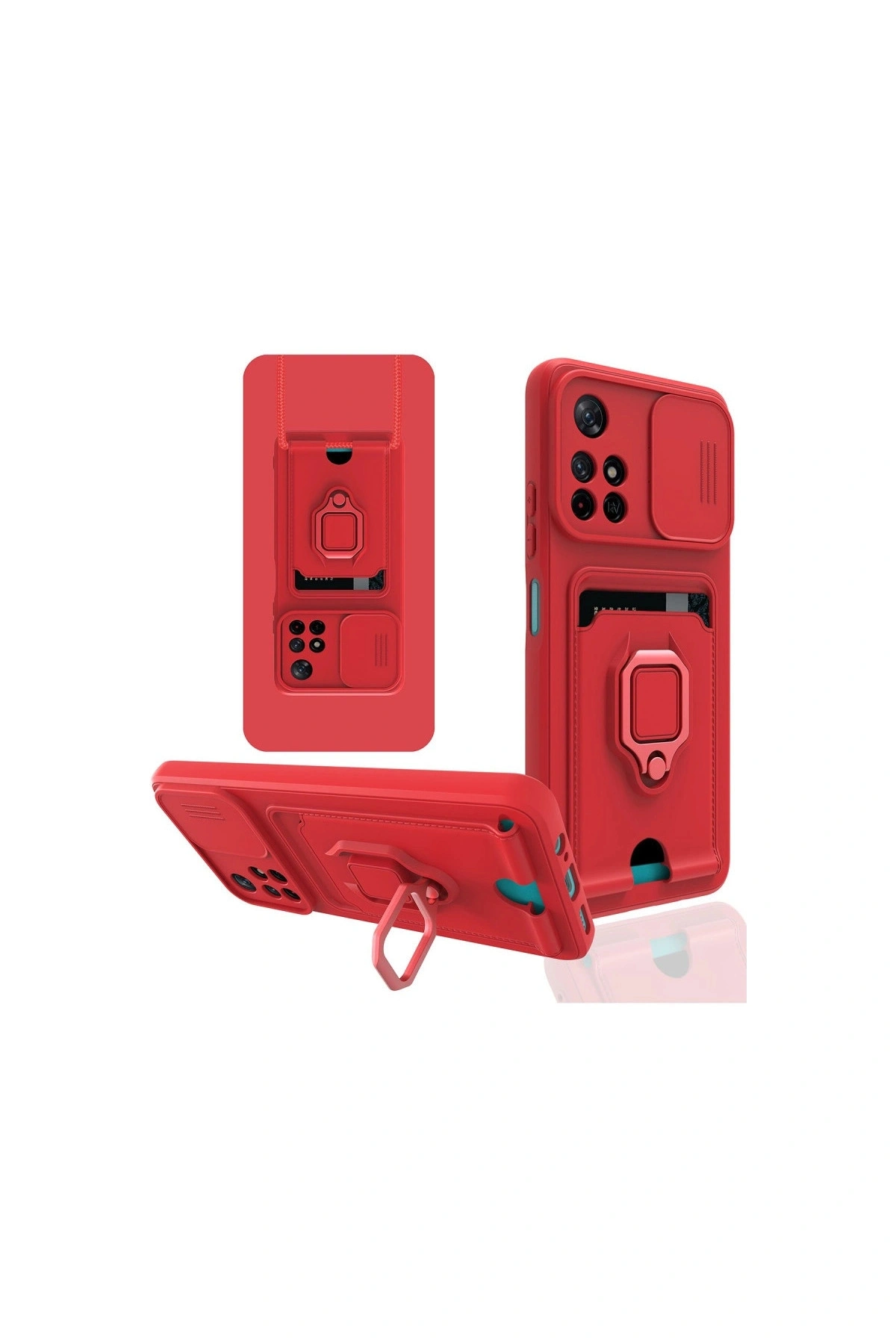 Redmi Note 11t Kılıf Zuma Kartvizitli Yüzüklü Silikon - Kırmızı