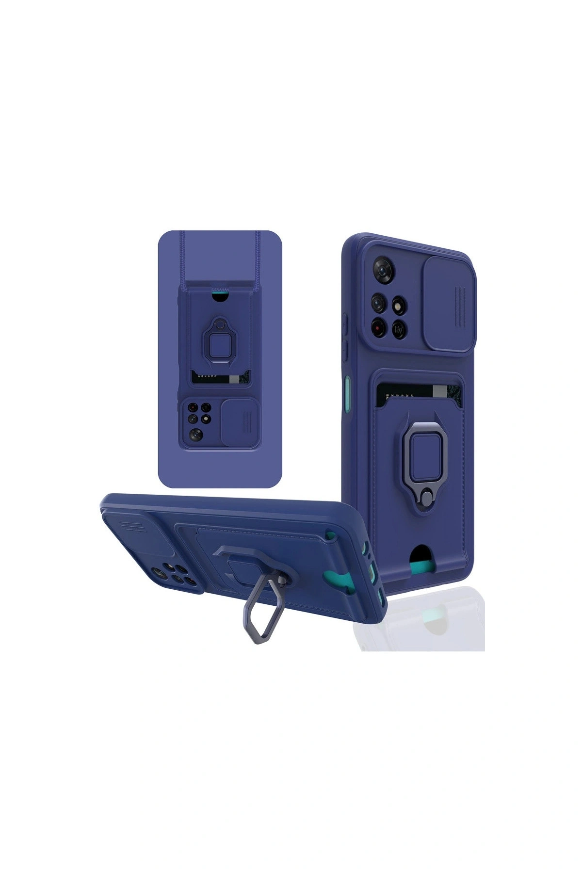 Redmi Note 11t Kılıf Zuma Kartvizitli Yüzüklü Silikon - Lacivert