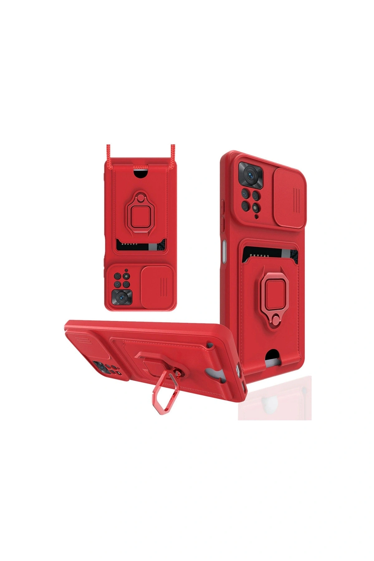 Redmi Note 12 Pro 4g Kılıf Zuma Kartvizitli Yüzüklü Silikon - Kırmızı