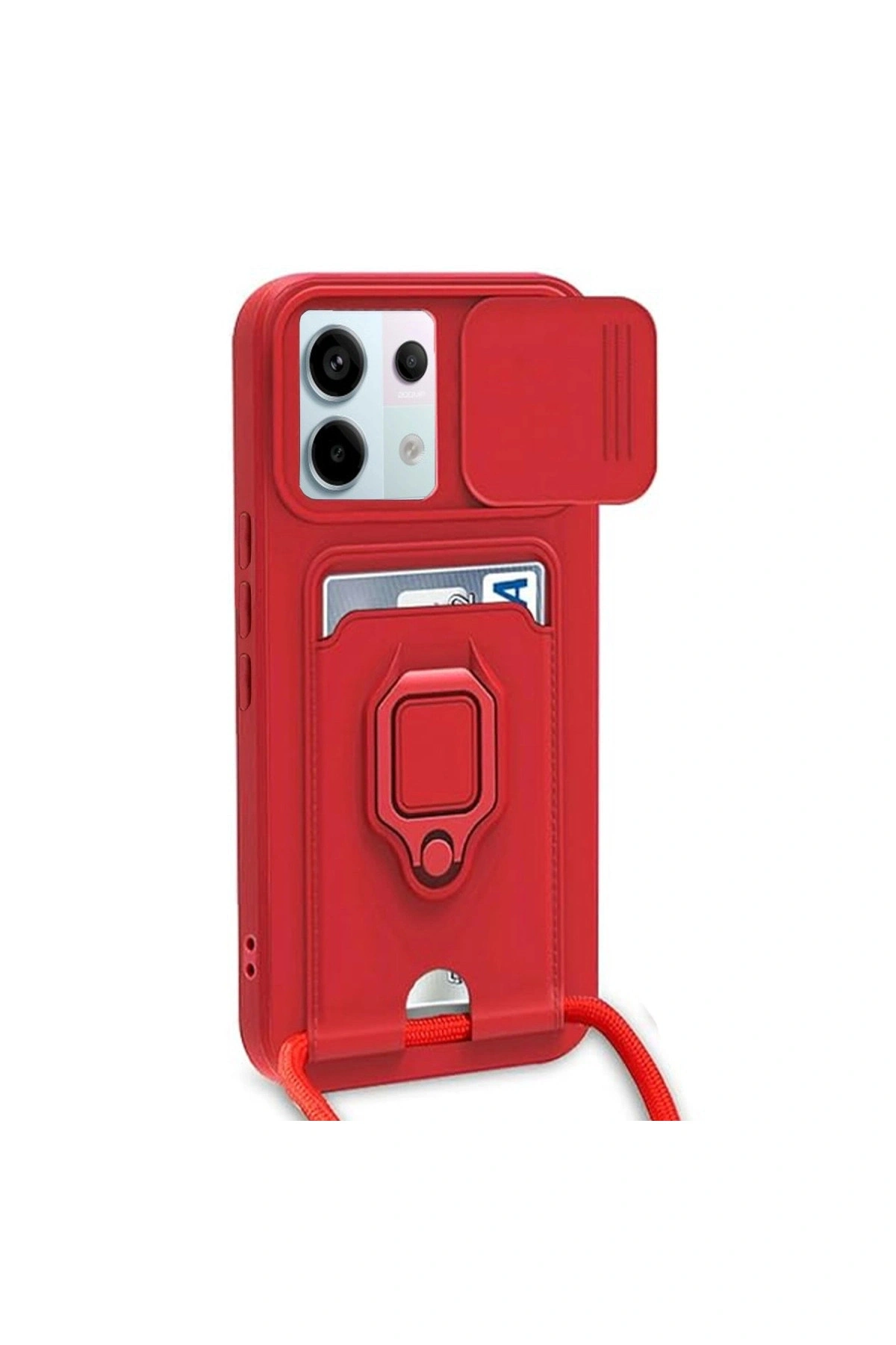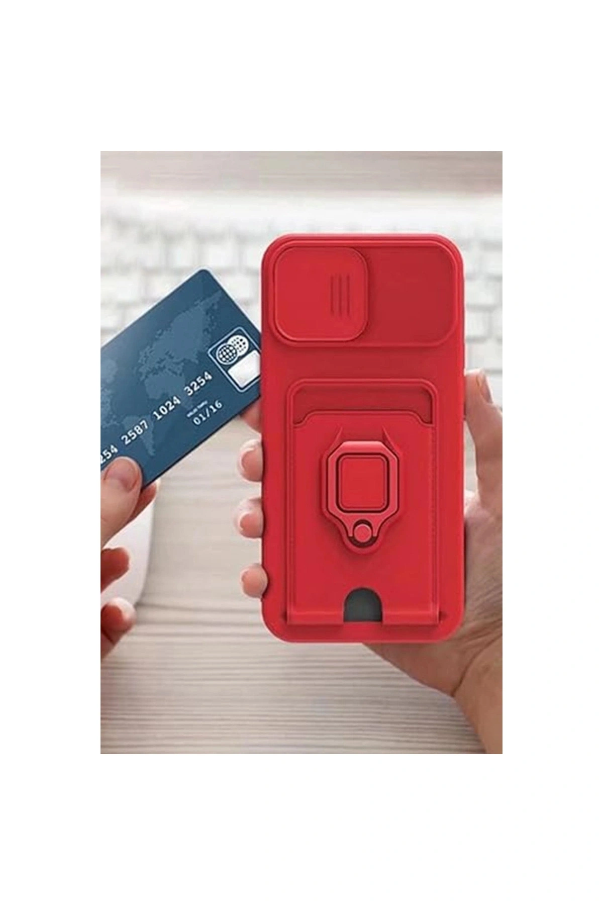 Redmi Note 13 Pro 5g Kılıf Zuma Kartvizitli Yüzüklü Silikon - Kırmızı