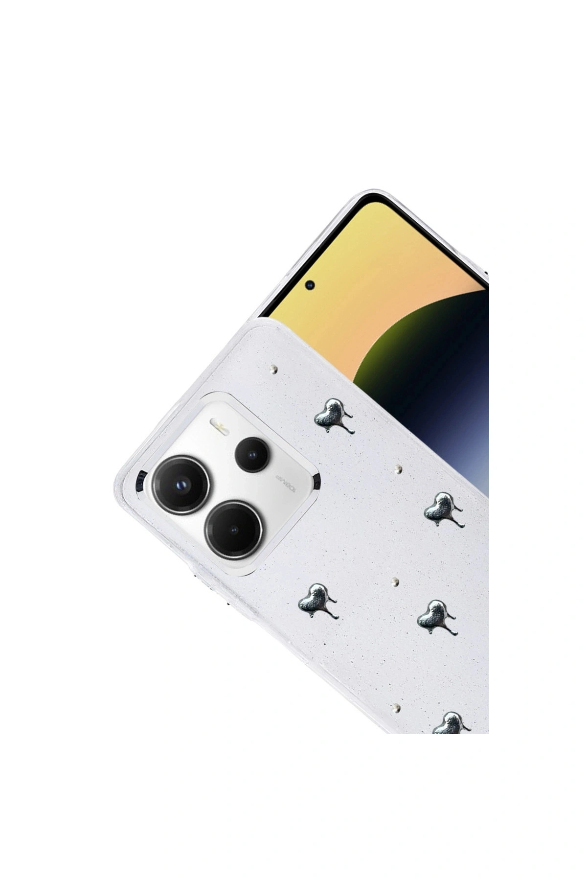 Fiyonk Desenli Kapak ✅ Zarafet ve Koruma Bir AradaFiyonk, yıldız, kelebek, lale, çiçek, kalp ve gül gibi zarif detaylarla süslenmiş bu kapak simli, şeffaf tasarımıyla estetik ve korumayı bir araya getiriyor.; Telefonunuzu yalnızca dış etkenlerden korumakla kalmaz, aynı zamanda ona göz alıcı bir stil kazandırır.; Günlük kullanımda dikkat çeken tasarımı sayesinde cihazınızın şıklığı öne çıkar.; ✅ Üstün Darbe KorumasıEsnek kenar yapısı ve dayanıklı malzemesiyle telefonunuzu darbelerden ve düşmelerden etkili bir şekilde korur.; Simli şeffaf yüzey, hem sağlamlık hem de görselliği bir arada sunarak cihazınızın görünümünü sergilemeye devam eder.; ✅ Konforlu ve Pratik Kullanımİnce ve hafif tasarımıyla telefonunuzu kalınlaştırmadan yüksek koruma sağlar.; Tüm tuşlar, bağlantı noktaları ve kamera çıkıntılarıyla tam uyumludur.; Kaymaz yüzeyi sayesinde elde daha güvenli bir tutuş sunar böylece günlük kullanımda rahatlık ve konfor sağlar.