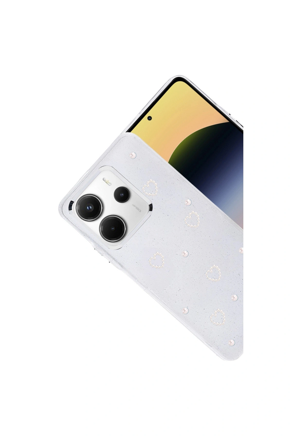 Fiyonk Desenli Kapak ✅ Zarafet ve Koruma Bir AradaFiyonk, yıldız, kelebek, lale, çiçek, kalp ve gül gibi zarif detaylarla süslenmiş bu kapak simli, şeffaf tasarımıyla estetik ve korumayı bir araya getiriyor.; Telefonunuzu yalnızca dış etkenlerden korumakla kalmaz, aynı zamanda ona göz alıcı bir stil kazandırır.; Günlük kullanımda dikkat çeken tasarımı sayesinde cihazınızın şıklığı öne çıkar.; ✅ Üstün Darbe KorumasıEsnek kenar yapısı ve dayanıklı malzemesiyle telefonunuzu darbelerden ve düşmelerden etkili bir şekilde korur.; Simli şeffaf yüzey, hem sağlamlık hem de görselliği bir arada sunarak cihazınızın görünümünü sergilemeye devam eder.; ✅ Konforlu ve Pratik Kullanımİnce ve hafif tasarımıyla telefonunuzu kalınlaştırmadan yüksek koruma sağlar.; Tüm tuşlar, bağlantı noktaları ve kamera çıkıntılarıyla tam uyumludur.; Kaymaz yüzeyi sayesinde elde daha güvenli bir tutuş sunar böylece günlük kullanımda rahatlık ve konfor sağlar.