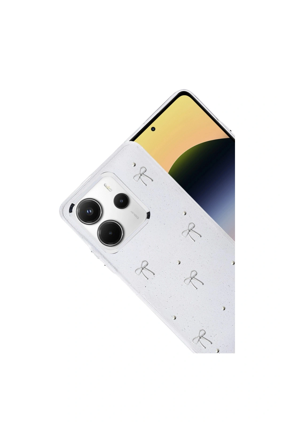 Fiyonk Desenli Kapak ✅ Zarafet ve Koruma Bir AradaFiyonk, yıldız, kelebek, lale, çiçek, kalp ve gül gibi zarif detaylarla süslenmiş bu kapak simli, şeffaf tasarımıyla estetik ve korumayı bir araya getiriyor.; Telefonunuzu yalnızca dış etkenlerden korumakla kalmaz, aynı zamanda ona göz alıcı bir stil kazandırır.; Günlük kullanımda dikkat çeken tasarımı sayesinde cihazınızın şıklığı öne çıkar.; ✅ Üstün Darbe KorumasıEsnek kenar yapısı ve dayanıklı malzemesiyle telefonunuzu darbelerden ve düşmelerden etkili bir şekilde korur.; Simli şeffaf yüzey, hem sağlamlık hem de görselliği bir arada sunarak cihazınızın görünümünü sergilemeye devam eder.; ✅ Konforlu ve Pratik Kullanımİnce ve hafif tasarımıyla telefonunuzu kalınlaştırmadan yüksek koruma sağlar.; Tüm tuşlar, bağlantı noktaları ve kamera çıkıntılarıyla tam uyumludur.; Kaymaz yüzeyi sayesinde elde daha güvenli bir tutuş sunar böylece günlük kullanımda rahatlık ve konfor sağlar.