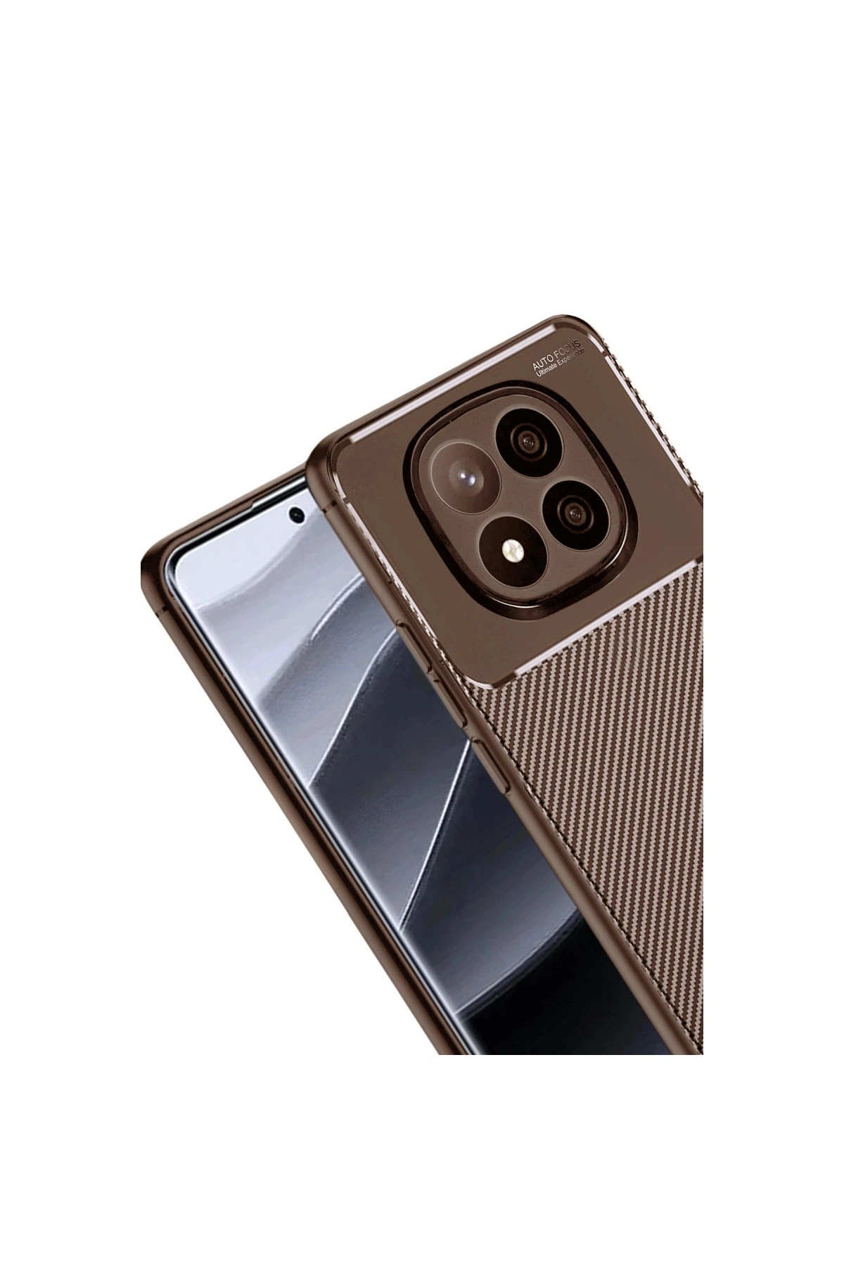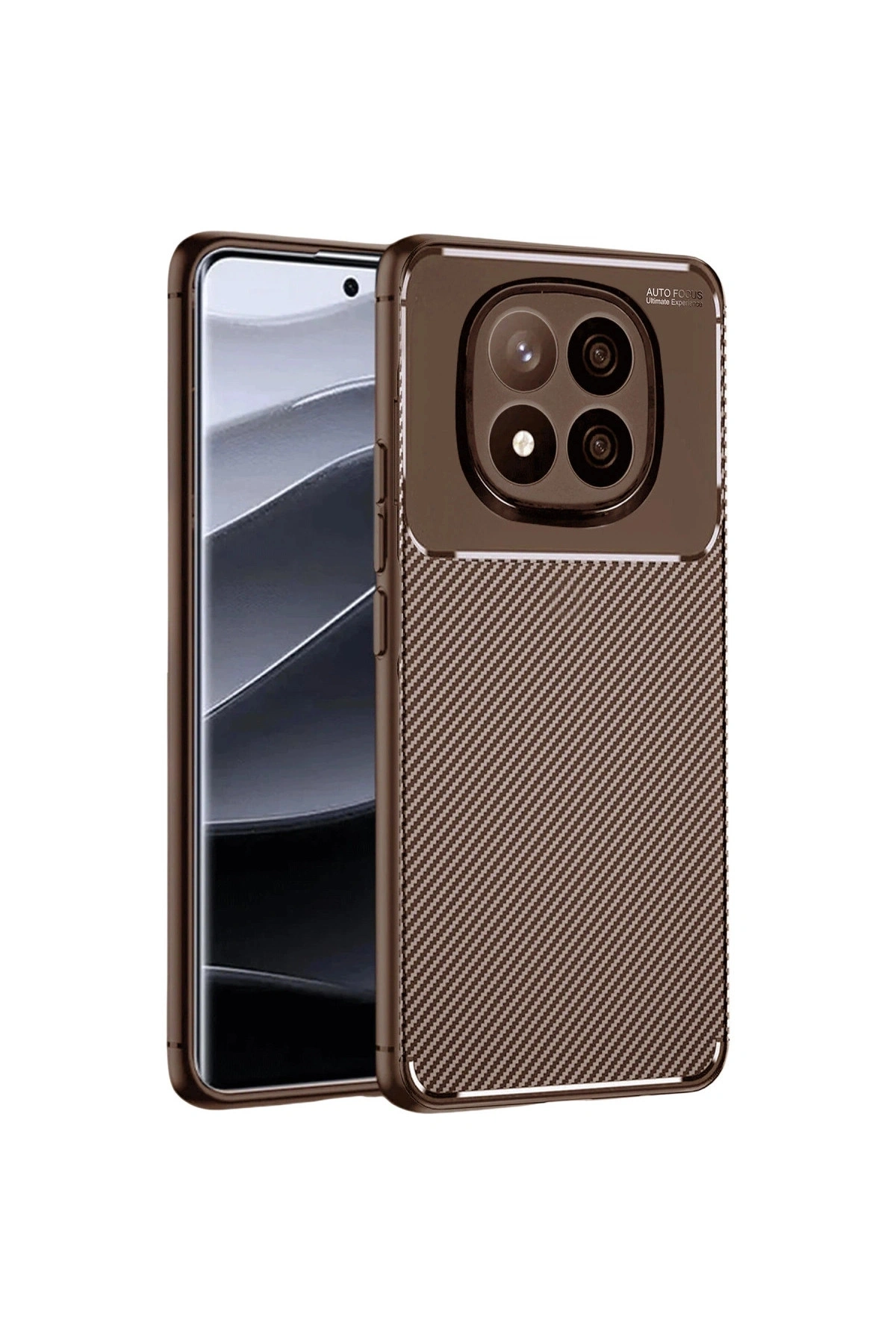 Redmi Note 14 Pro Plus Kılıf Auto Focus Karbon Kapak - Kahverengi