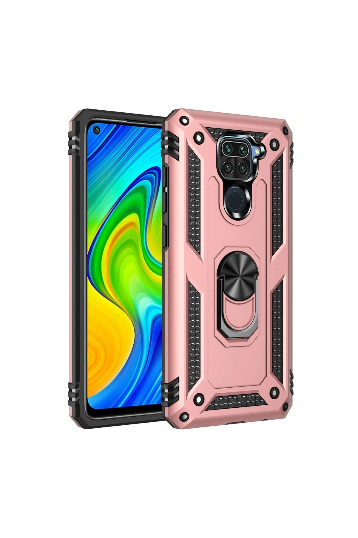 Redmi Note 9 Kılıf Sofya Yüzüklü Silikon Kapak - Rose