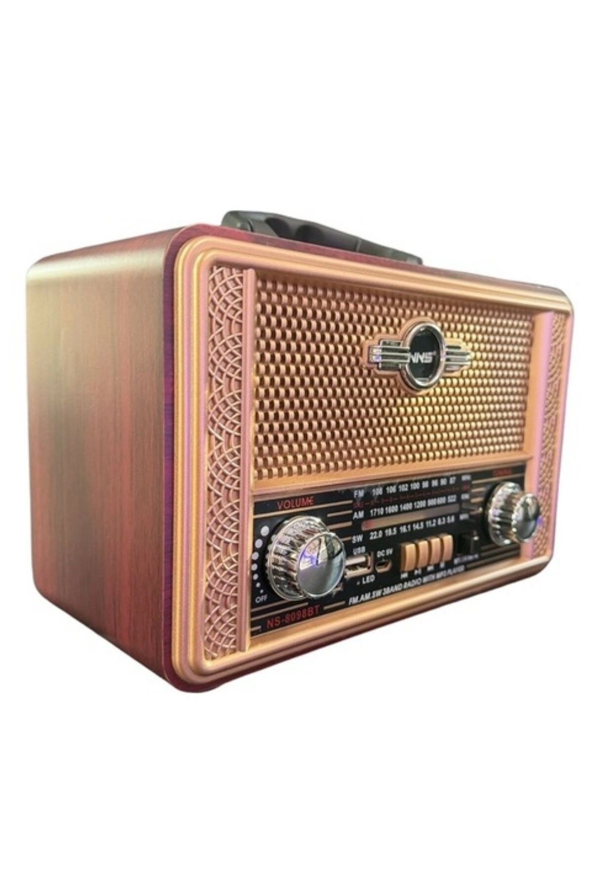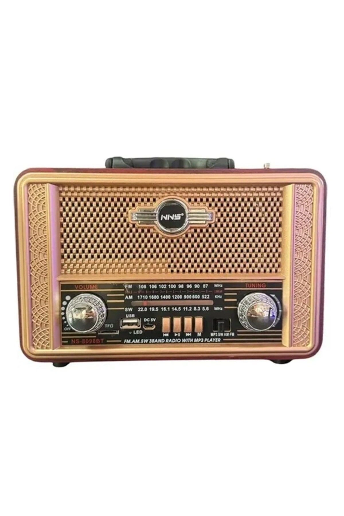 Retro, Nostaljik, Ahşap Tasarım Bluetooth Hoparlörlü, Şarjlı, Taşınabilir Otantik Tasarımlı FM/AM Destekli Radyo NS8098 Geçmişin nostaljisini günümüz teknolojisiyle birleştiren Retro Ahşap Tasarım Bluetooth Hoparlörlü Radyo, hem şıklığı hem de fonksiyonelliğiyle yaşam alanlarınıza otantik bir dokunuş katar.; ???? Retro & Ahşap Tasarım: Eskileri hatırlatan klasik görünümüyle evinizin dekorasyonuna nostaljik bir hava katar.; ???? Bluetooth Özelliği: Telefon, tablet veya bilgisayarınızla kablosuz bağlantı kurarak sevdiğiniz müzikleri kolayca dinleyebilirsiniz.; ???? FM/AM Radyo Desteği: Favori radyo kanallarınızı yüksek ses kalitesiyle dinleme imkânı sunar.; ???? Şarjlı ve Taşınabilir: Dahili bataryası sayesinde kabloya ihtiyaç duymadan istediğiniz yerde keyifle kullanabilirsiniz.; ???? Yüksek Ses Kalitesi: Güçlü hoparlör sistemi, hem müzik hem de radyo dinlerken net ve güçlü bir ses deneyimi yaşatır.; Nerelerde Kullanılır? Evde dekoratif bir parça ve müzik keyfi için, Bahçede, piknikte ya da seyahatlerde taşınabilir müzik keyfi için, Ofiste dinlendirici radyo yayını dinlemek için, Sevdiklerinize nostaljik ama teknolojik bir hediye alternatifi olarak Neden Tercih Etmelisiniz? ✅ Modern teknoloji + nostaljik görünüm ✅ Taşınabilir ve şarjlı kullanım ✅ Bluetooth + FM/AM radyo desteği ✅ Dekoratif ve otantik tasarım