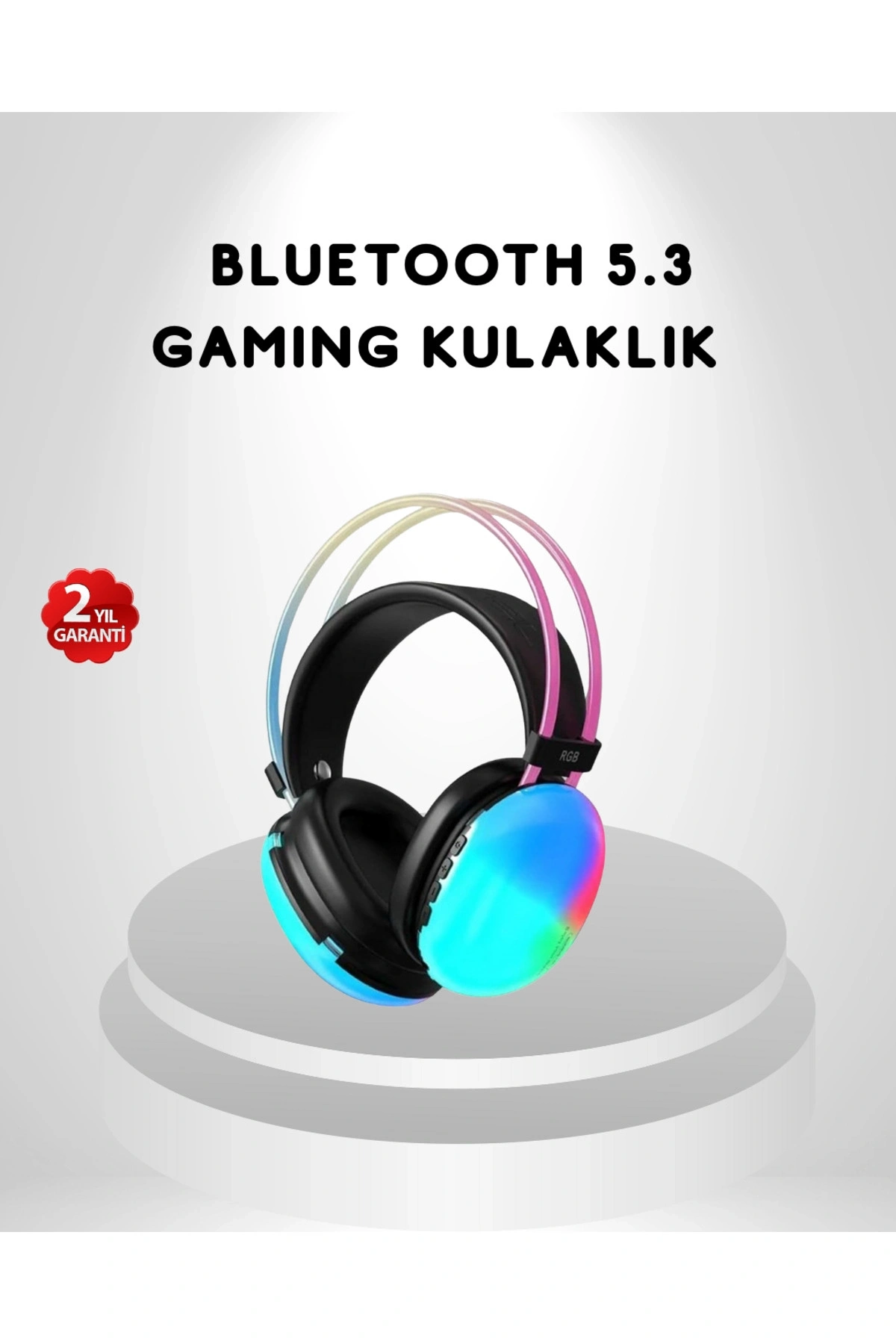 Oyun oynarken, müzik dinlerken veya günlük kullanımda uzun süre kulaklık takan kullanıcılar için tasarlanan bu RGB ışıklı kablosuz kulaklık, konfor, ve tasarımı bir arada sunan gelişmiş bir modeldir.; Sadece 280 gram ağırlığında olan kulaklık, baş ile kulak bölgesine eşit baskı uygulayacak şekilde ergonomik olarak tasarlanmıştır.; Bu sayede uzun süreli kullanımda yorgunluk, baskı veya ağrı hissettirmez.; Kulaklığın cilt dostu nefes alabilir pedleri, kulağı tamamen sararak dış ortam seslerini etkili şekilde izole eder.; Üç boyutlu (3D çevresel) ses teknolojisi, kullanıcıya gerçekçi bir ses deneyimi sunar.; Oyunlarda adımlar, patlamalar ve çevresel sesler daha net algılanır; müzik dinlerken bas ve tiz dengesi daha güçlü hissedilir.; Film ve video izlerken sinematik bir ses atmosferi oluşturur.; Cihaz, IPX4 suya dayanıklılık sertifikasına sahiptir.; Ter, yağmur sıçraması veya spor aktiviteleri sırasında oluşabilecek nemden etkilenmeden çalışır.; Bu özellik, hem günlük kullanım hem spor yaparken kullanım için büyük avantaj sağlar.; Gelişmiş Bluetooth 5.3 teknolojisi, daha düşük gecikme, daha kararlı bağlantı ve daha geniş çekim alanı sunar.; Bağlantı kesintileri minimuma iner ve cihazla olan etkileşim her zaman stabil kalır.; Oyun sırasında gecikme yaşamamak, hem profesyonel hem amatör oyuncular için büyük önem taşır.; 800mAh batarya kapasitesi, kulaklığın uzun süre kullanılmasını sağlar.; Tek şarjla saatlerce kesintisiz müzik, oyun veya konuşma deneyimi sunar.; RGB aydınlatma, kulaklığa modern ve şık bir görünüm kazandırırken oyun atmosferini güçlendirir.; Hem profesyonel hem günlük kullanıcılar için ideal olan bu kulaklık, hafif yapısı, güçlü bataryası, suya dayanıklı tasarımı ve gelişmiş ses performansı ile mükemmel bir seçenek sunar.