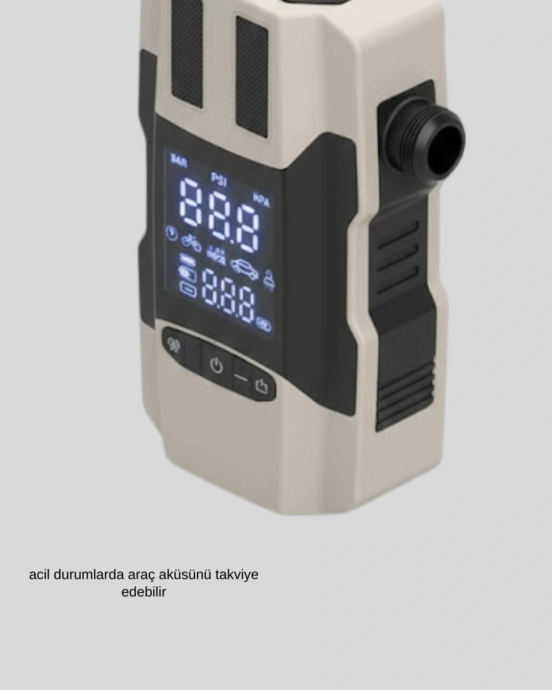 Araç pompası ve akü takviye powerbank, tek cihazda birden fazla ihtiyacı karşılamak isteyenler için ideal bir çözümdür. 12.000 mAh kapasitesi, hem akü takviyesi hem de mobil cihaz şarjı için yeterli güç sunar. Lastik şişirme özelliği, yolculuk sırasında pratiklik sağlar. Kompakt ve taşınabilir yapısı sayesinde araçta sürekli bulundurulabilir. Günlük kullanımda ve acil durumlarda güvenilir bir yardımcıdır.
