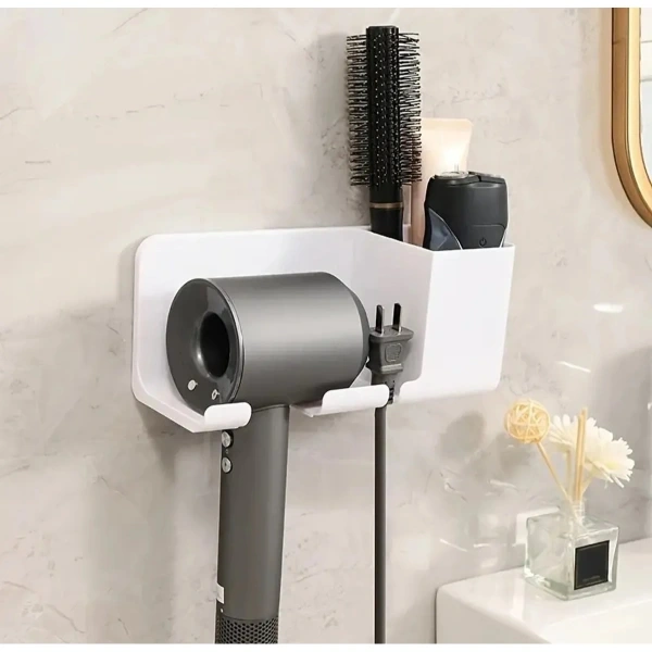 SAÇ KURUTMA MAKİNESİ VE EŞYA DÜZENLEYİCİ BEYAZ RENKÜrün ÖzellikleriDuvara monte edilebilir saç kurutma makinesi ve eşya düzenleyici, hem işlevsellik hem de şıklığı bir araya getirerek banyolarda düzen ve kolaylık sağlar. Saç kurutma makinesi tutacağı, kurutma makinesini güvenli bir şekilde tutarak yerden tasarruf etmenize ve banyoda düzenli bir görünüm oluşturmanıza yardımcı olur. Tıraş makineleri, diş fırçaları ve tüp şeklindeki kremler gibi günlük bakım ürünlerinizi saklamak için ek bir eşya saklama alanı sunar. Modern ve minimalist tasarımı, banyo dekorasyonunuzu tamamlayan estetik bir görünüm sağlar. Plastik ve metal kombinasyonundan oluşan dayanıklı malzemesi sayesinde uzun ömürlüdür ve sağlam bir yapıya sahiptir. Duvara kolayca monte edilebilmesi, ürünü pratik bir kullanım çözümü haline getirir. Bu düzenleyici, banyoda hem alan yönetimini kolaylaştırır hem de hijyenik bir düzen oluşturur. Ürün beyaz renklidir.Paket İçeriği1 adet saç kurutma makinesi ve eşya düzenleyici aparat.