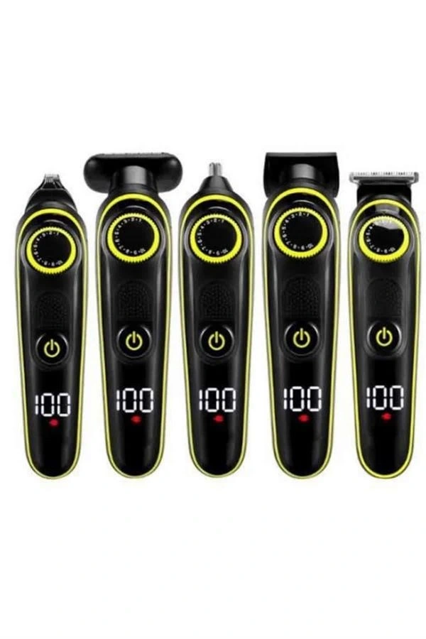Bu 5'i 1 arada çok fonksiyonlu bakım seti, kişisel bakım rutininizi daha pratik ve etkili hale getiriyor. Saç kesimi, sakal tıraşı, burun ve kulak kılı temizliği, detaylı şekillendirme ve vücut tıraşı gibi birden fazla işlevi tek cihazda sunarak, tam kapsamlı bakım imkanı sağlıyor. Güçlü motoru ve paslanmaz çelik bıçakları ile pürüzsüz bir tıraş deneyimi sunarken, uzun ömürlü ve keskin yapısı sayesinde her kullanımda yüksek performans elde edebilirsiniz. Kablosuz ve şarjlı kullanımı sayesinde hareket özgürlüğü tanır; tam dolu batarya ile uzun süreli kullanım imkanı sunar. Farklı kesim uzunlukları için ayarlanabilir tarak başlıkları mevcuttur; bu sayede kişisel stilinize uygun şekillendirmeyi zahmetsizce gerçekleştirebilirsiniz. Ergonomik tutuşa sahip şık ve modern tasarımı, hem kullanım kolaylığı sağlar hem de banyo alanınıza estetik bir katkı sunar. Üzerindeki LED gösterge, pil seviyesini anlık olarak takip etmenize olanak tanırken, düşük sesli çalışması ile her ortamda konforlu bir kullanım deneyimi yaşatır. Suya dayanıklı başlıkları ve çıkarılabilir bıçakları sayesinde temizlik işlemleri oldukça kolaydır; hijyenik kullanım için yalnızca düzenli olarak yıkamanız yeterlidir.