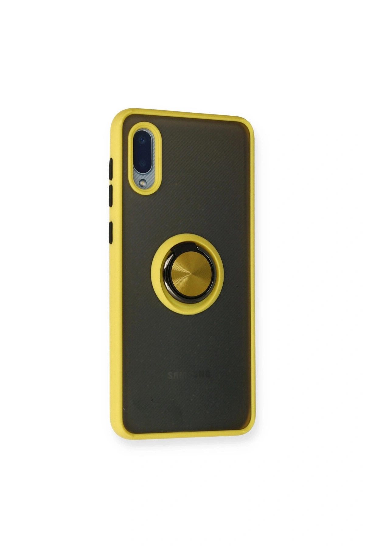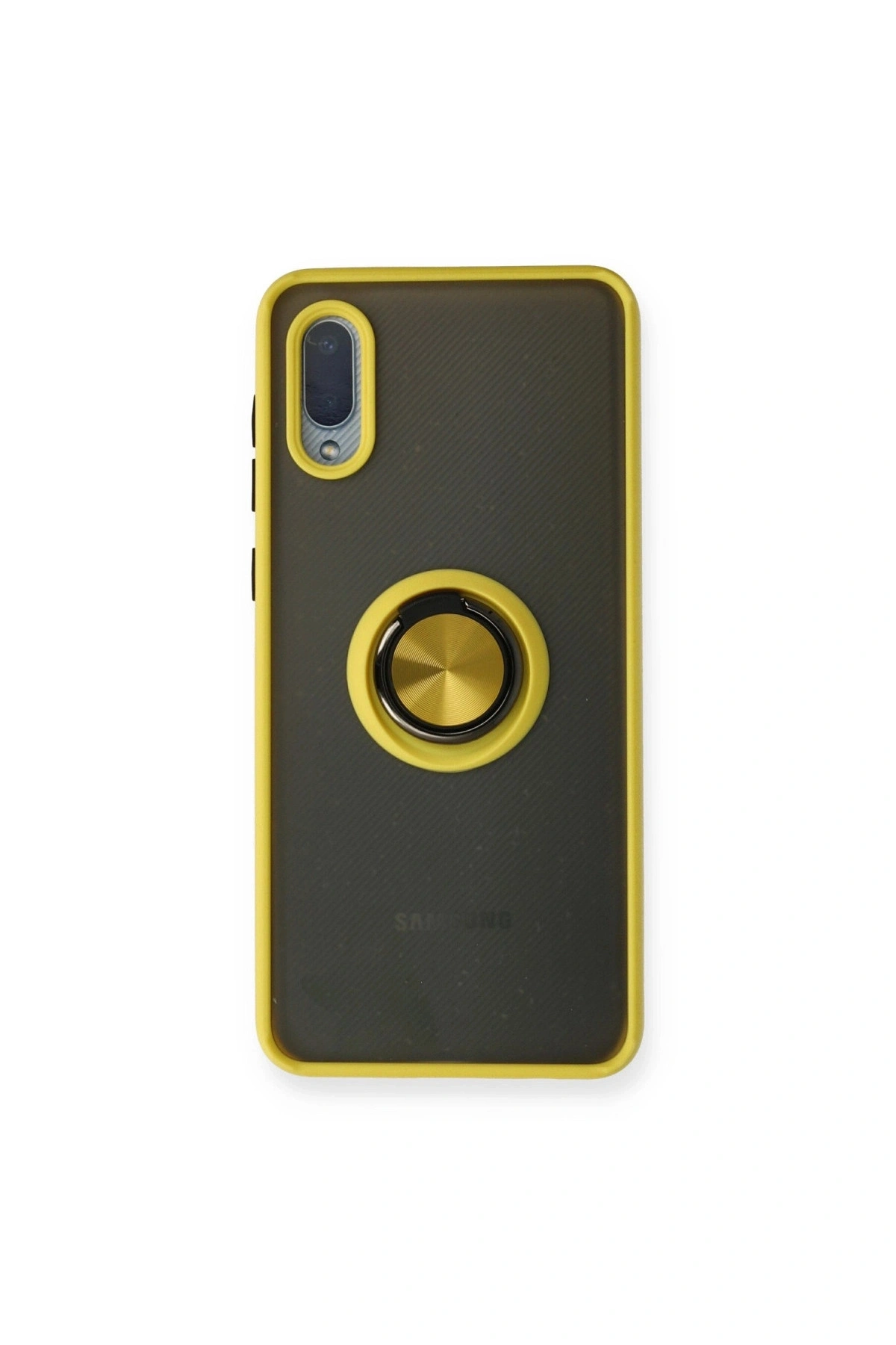 Samsung Galaxy A02 Kılıf Montreal Yüzüklü Silikon Kapak - Sarı