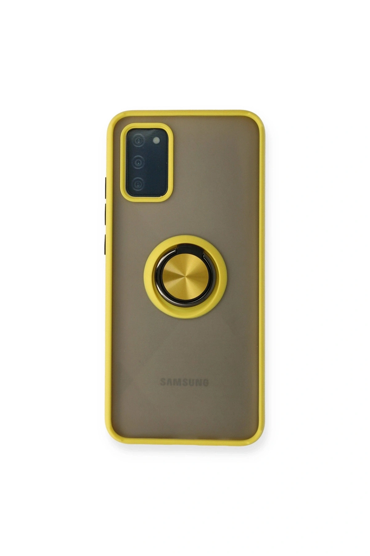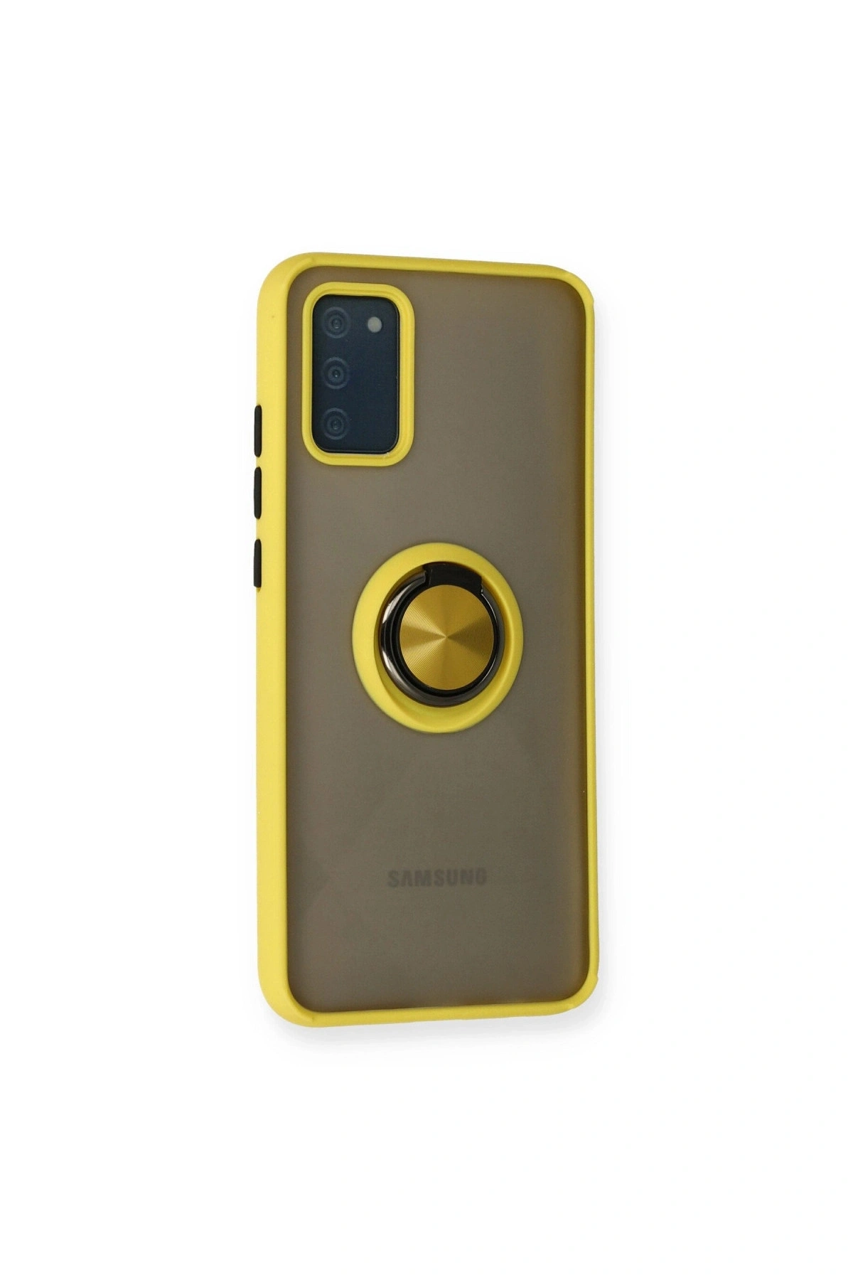 Samsung Galaxy A02s Kılıf Montreal Yüzüklü Silikon Kapak - Sarı