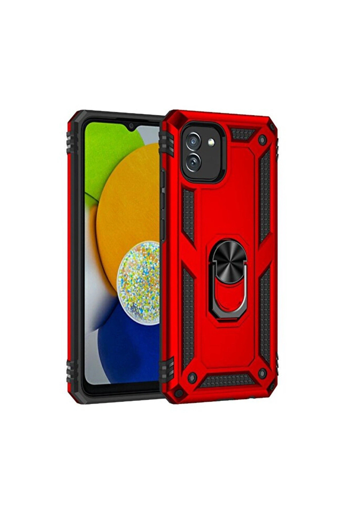 Samsung Galaxy A03 Kılıf Sofya Yüzüklü Silikon Kapak - Kırmızı