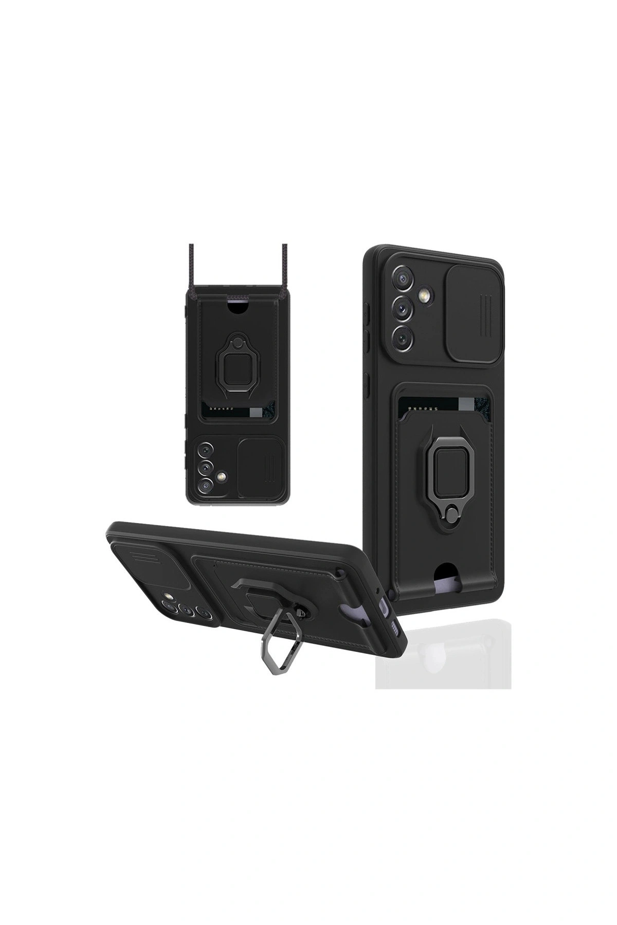 Samsung Galaxy A04s Kılıf Zuma Kartvizitli Yüzüklü Silikon - Siyah