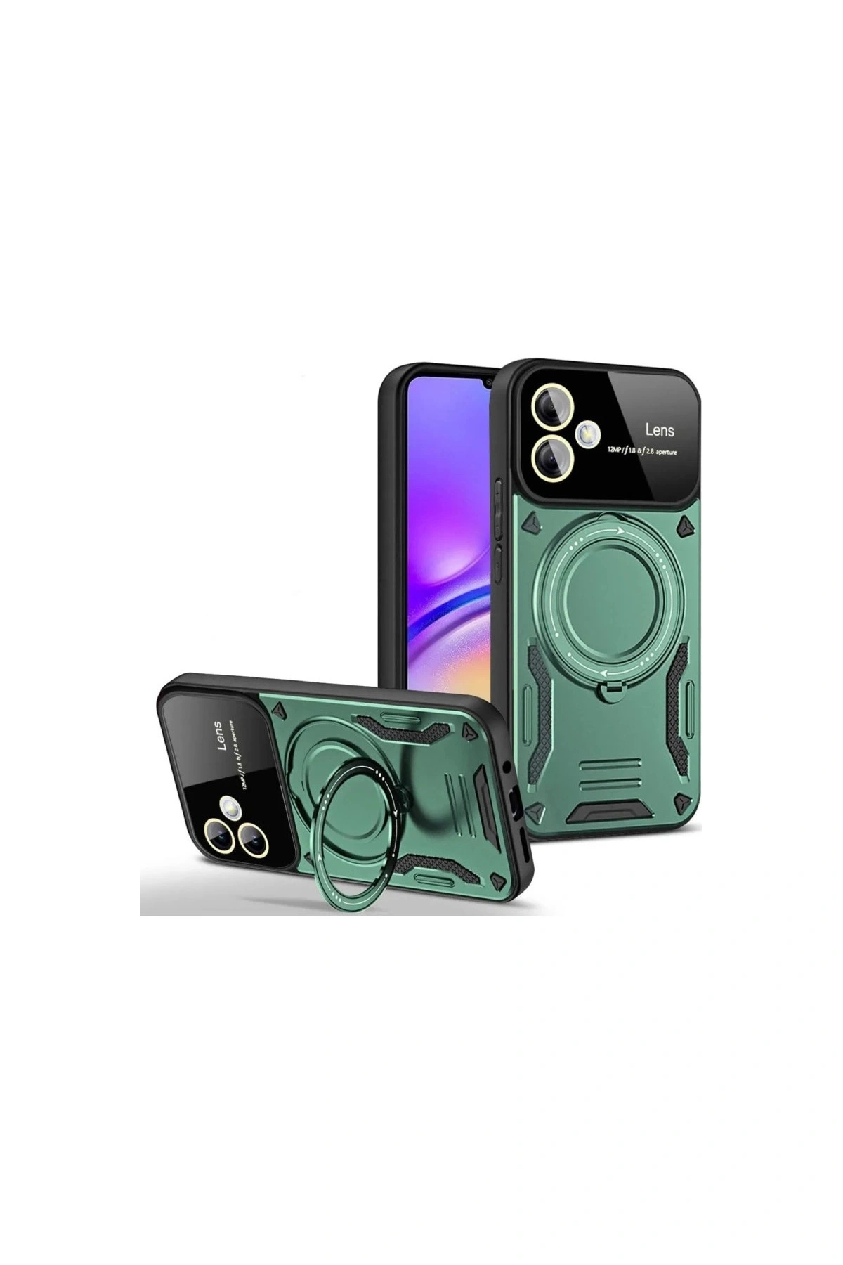 Samsung Galaxy A06 Kılıf Joy Lens Standlı Kapak - Koyu Yeşil
