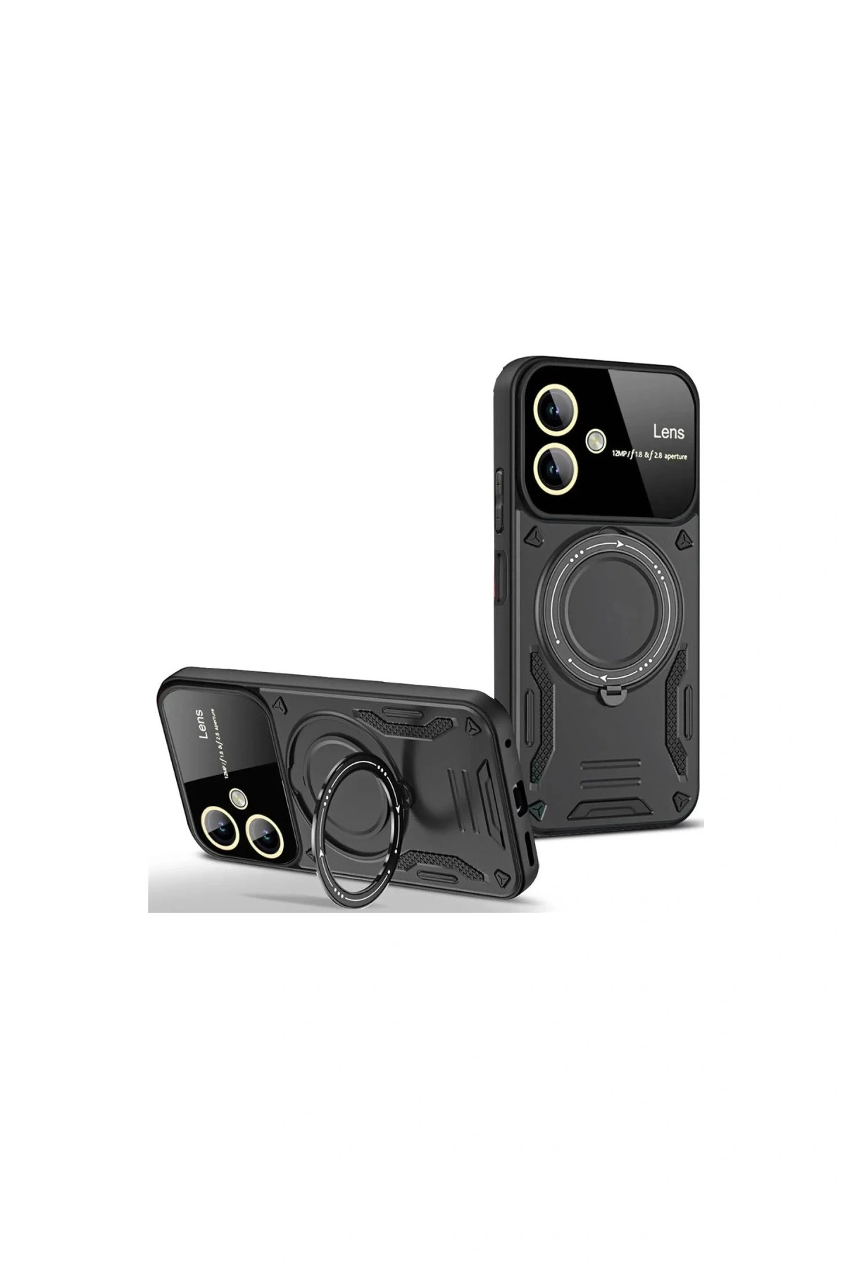 Samsung Galaxy A06 Kılıf Joy Lens Standlı Kapak - Siyah