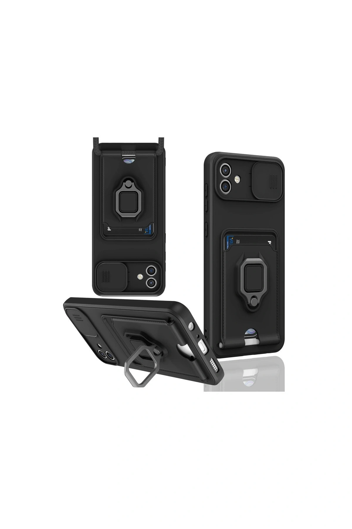Samsung Galaxy A06 Kılıf Zuma Kartvizitli Yüzüklü Silikon - Siyah