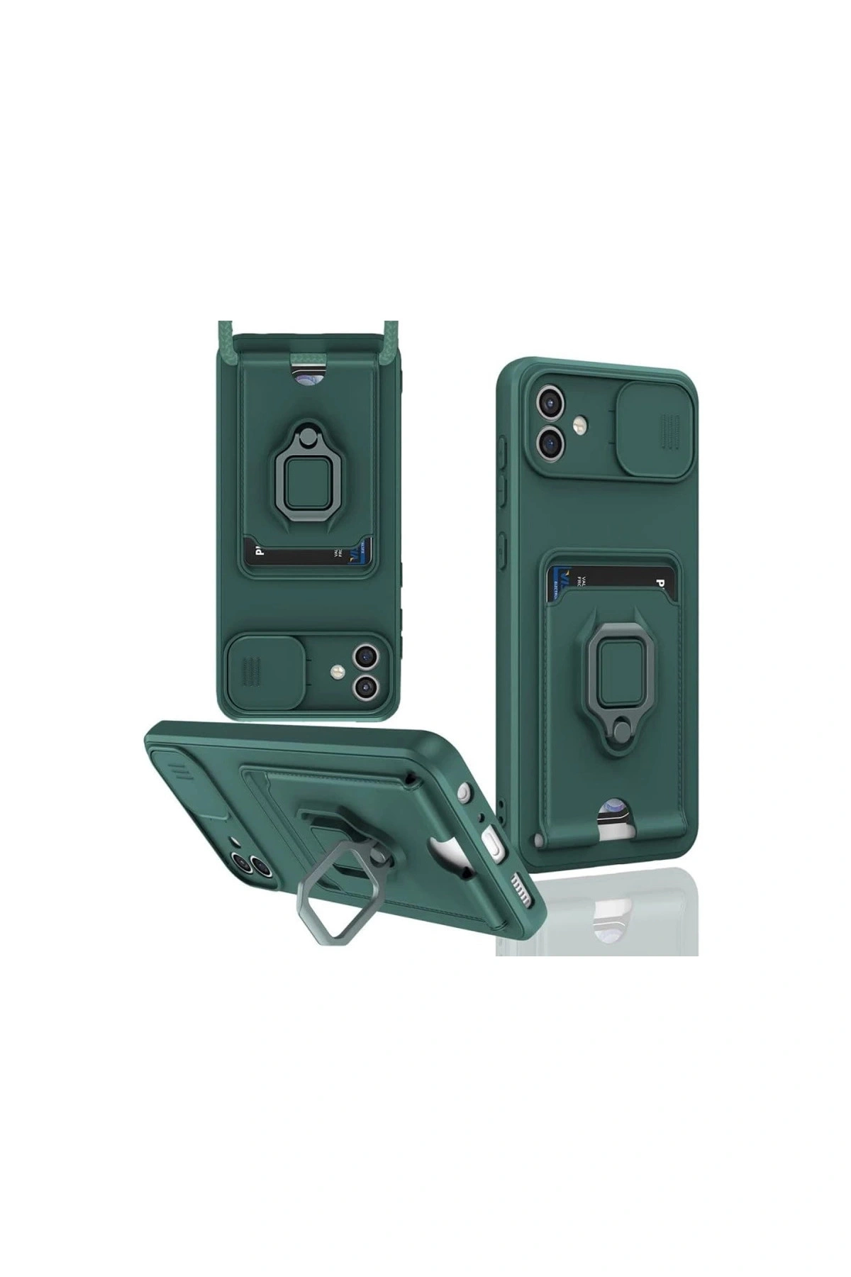 Samsung Galaxy A06 Kılıf Zuma Kartvizitli Yüzüklü Silikon - Yeşil