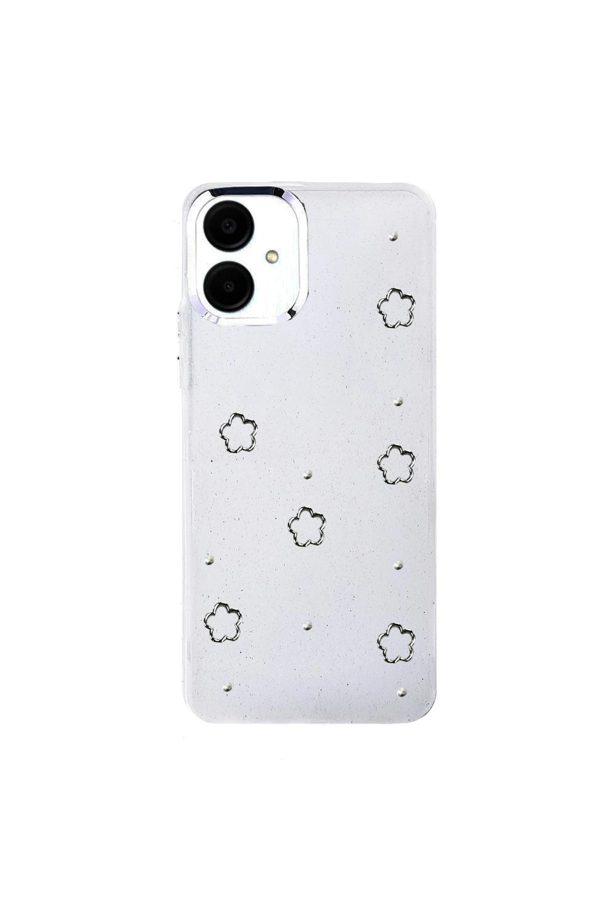 Fiyonk Desenli Kapak ✅ Zarafet ve Koruma Bir AradaFiyonk, yıldız, kelebek, lale, çiçek, kalp ve gül gibi zarif detaylarla süslenmiş bu kapak simli, şeffaf tasarımıyla estetik ve korumayı bir araya getiriyor.; Telefonunuzu yalnızca dış etkenlerden korumakla kalmaz, aynı zamanda ona göz alıcı bir stil kazandırır.; Günlük kullanımda dikkat çeken tasarımı sayesinde cihazınızın şıklığı öne çıkar.; ✅ Üstün Darbe KorumasıEsnek kenar yapısı ve dayanıklı malzemesiyle telefonunuzu darbelerden ve düşmelerden etkili bir şekilde korur.; Simli şeffaf yüzey, hem sağlamlık hem de görselliği bir arada sunarak cihazınızın görünümünü sergilemeye devam eder.; ✅ Konforlu ve Pratik Kullanımİnce ve hafif tasarımıyla telefonunuzu kalınlaştırmadan yüksek koruma sağlar.; Tüm tuşlar, bağlantı noktaları ve kamera çıkıntılarıyla tam uyumludur.; Kaymaz yüzeyi sayesinde elde daha güvenli bir tutuş sunar böylece günlük kullanımda rahatlık ve konfor sağlar.