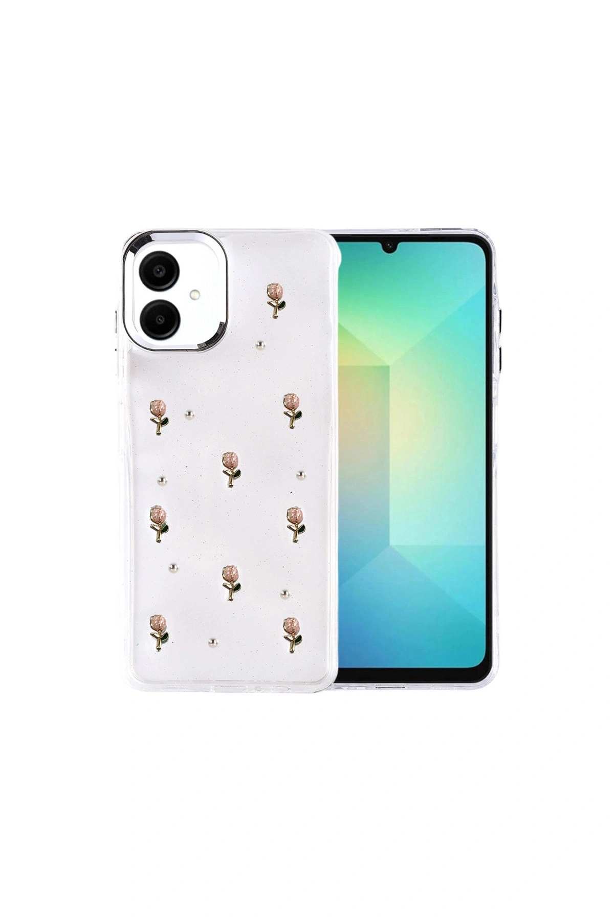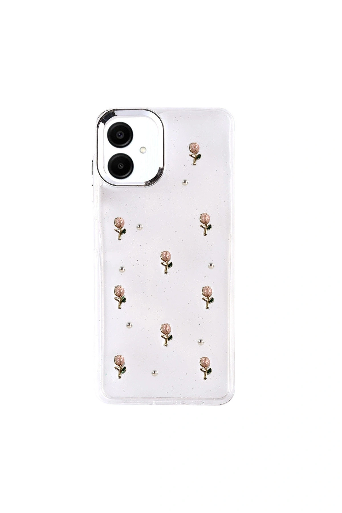 Fiyonk Desenli Kapak ✅ Zarafet ve Koruma Bir AradaFiyonk, yıldız, kelebek, lale, çiçek, kalp ve gül gibi zarif detaylarla süslenmiş bu kapak simli, şeffaf tasarımıyla estetik ve korumayı bir araya getiriyor.; Telefonunuzu yalnızca dış etkenlerden korumakla kalmaz, aynı zamanda ona göz alıcı bir stil kazandırır.; Günlük kullanımda dikkat çeken tasarımı sayesinde cihazınızın şıklığı öne çıkar.; ✅ Üstün Darbe KorumasıEsnek kenar yapısı ve dayanıklı malzemesiyle telefonunuzu darbelerden ve düşmelerden etkili bir şekilde korur.; Simli şeffaf yüzey, hem sağlamlık hem de görselliği bir arada sunarak cihazınızın görünümünü sergilemeye devam eder.; ✅ Konforlu ve Pratik Kullanımİnce ve hafif tasarımıyla telefonunuzu kalınlaştırmadan yüksek koruma sağlar.; Tüm tuşlar, bağlantı noktaları ve kamera çıkıntılarıyla tam uyumludur.; Kaymaz yüzeyi sayesinde elde daha güvenli bir tutuş sunar böylece günlük kullanımda rahatlık ve konfor sağlar.