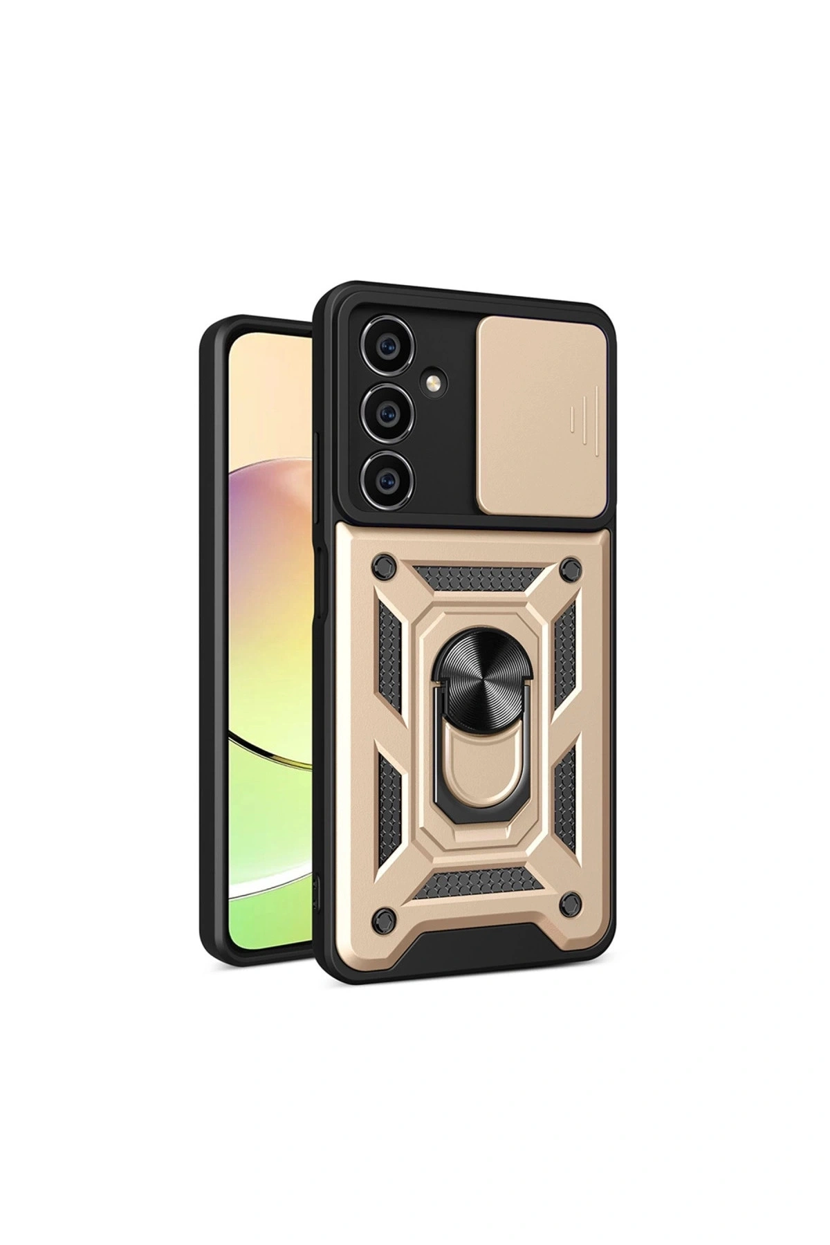 Samsung Galaxy A25 5g Kılıf Pars Lens Yüzüklü Silikon - Gold