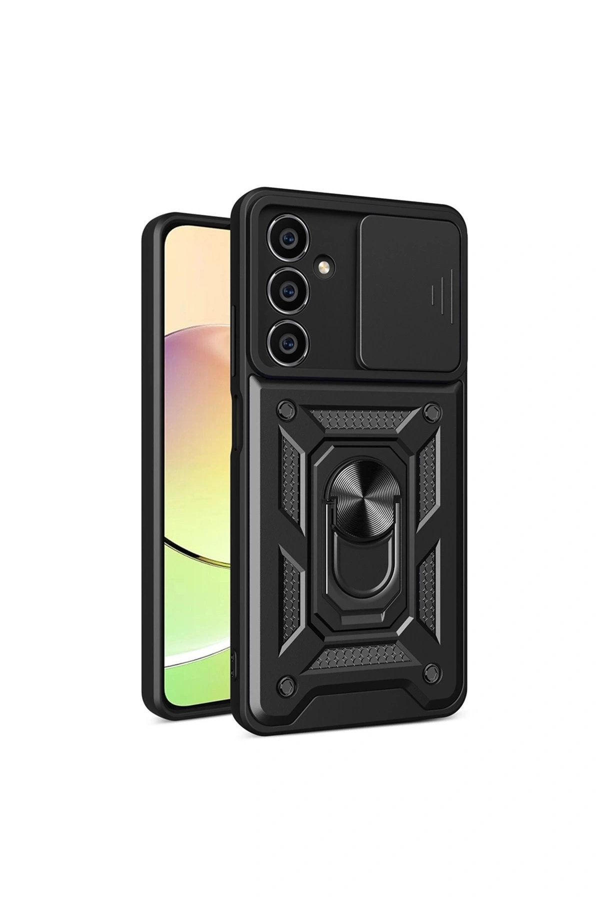 Pars Lens Yüzüklü Silikon✅ Soft ve Pürüzsüz Dış Yüzey Dayanıklı silikon dış kaplaması, mat ve yumuşak dokusuyla hem premium bir görünüm hem de üstün kavrama hissi sunar.; Leke ve parmak izi tutmayan yüzeyi sayesinde cihazınız her zaman temiz görünür.; ✅ Cihaza Tam Kalıp Uyumu Pars serisi, cihazınızın hatlarını birebir kavrayacak şekilde tasarlanmıştır.; Kamera çıkıntıları ve ekran çerçevesi etrafındaki yükseltilmiş kenarlar, düz yüzeylerle temasın önüne geçerek ekstra koruma sağlar.; ✅ Maksimum Darbe Koruması Sertleştirilmiş dış yüzey ve esnek iç katman ile entegre darbe emici yapı, cihazınızı düşme ve çarpma gibi günlük risklere karşı etkili şekilde korur.; Arka gövde ve köşeler dahil olmak üzere tam kapsama sağlar.; ✅ Kolay Tak-Çıkar Esnek Yapı Yüksek kaliteli silikon yapısı sayesinde kılıf cihazınıza kolayca takılır ve çıkarılır.; Formunu uzun süre korur, gevşeme veya deforme olma yapmaz.; ✅ Tüm Slotlara Erişim Sağlar Tuşlar, şarj girişi, mikrofon ve hoparlör gibi tüm bağlantı noktalarına tam erişim sağlar.; Tuş alanlarında yer alan hassas kesim ve yüzeyler, kusursuz kullanım deneyimi sunar.; ✅ Lens Korumalı Sürgülü Kapak Kamerayı çiziklerden, tozdan ve dış etkenlerden koruyan sürgülü lens kapağı sayesinde cihazınızın kamera modülü her zaman güvende olur.; Kullanmadığınız zamanlarda lensleri kapatarak ekstra koruma sağlar.; ✅ Metal Yüzük Stand Özelliği Kılıfın arka kısmında yer alan entegre metal halka hem tutucu hem de stand olarak işlev görür.; Eller serbest video izleme, içerik görüntüleme ya da masaüstü kullanımı için idealdir.; ✅ Sağlığa Zararlı Materyal İçermez Üründe kullanılan tüm malzemeler insan sağlığına ve çevreye uyumlu, BPA ve zararlı kimyasal içermeyen hammaddelerden üretilmiştir.