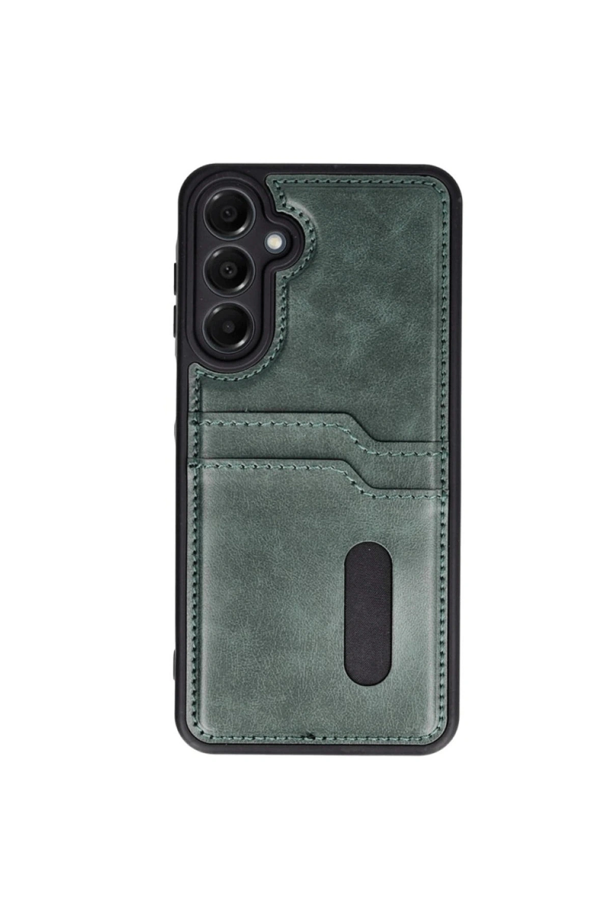 Samsung Galaxy A25 5g Kılıf Sara Kartvizitli Deri Kılıf - Koyu Yeşil