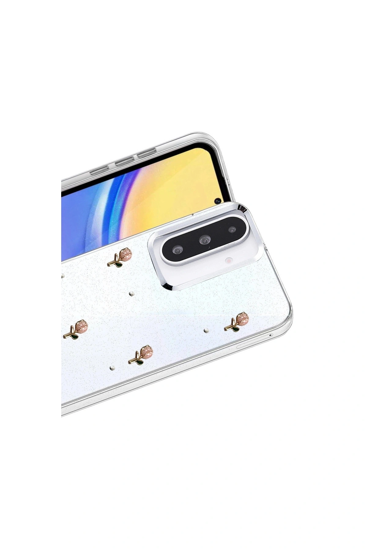 Fiyonk Desenli Kapak ✅ Zarafet ve Koruma Bir AradaFiyonk, yıldız, kelebek, lale, çiçek, kalp ve gül gibi zarif detaylarla süslenmiş bu kapak simli, şeffaf tasarımıyla estetik ve korumayı bir araya getiriyor.; Telefonunuzu yalnızca dış etkenlerden korumakla kalmaz, aynı zamanda ona göz alıcı bir stil kazandırır.; Günlük kullanımda dikkat çeken tasarımı sayesinde cihazınızın şıklığı öne çıkar.; ✅ Üstün Darbe KorumasıEsnek kenar yapısı ve dayanıklı malzemesiyle telefonunuzu darbelerden ve düşmelerden etkili bir şekilde korur.; Simli şeffaf yüzey, hem sağlamlık hem de görselliği bir arada sunarak cihazınızın görünümünü sergilemeye devam eder.; ✅ Konforlu ve Pratik Kullanımİnce ve hafif tasarımıyla telefonunuzu kalınlaştırmadan yüksek koruma sağlar.; Tüm tuşlar, bağlantı noktaları ve kamera çıkıntılarıyla tam uyumludur.; Kaymaz yüzeyi sayesinde elde daha güvenli bir tutuş sunar böylece günlük kullanımda rahatlık ve konfor sağlar.