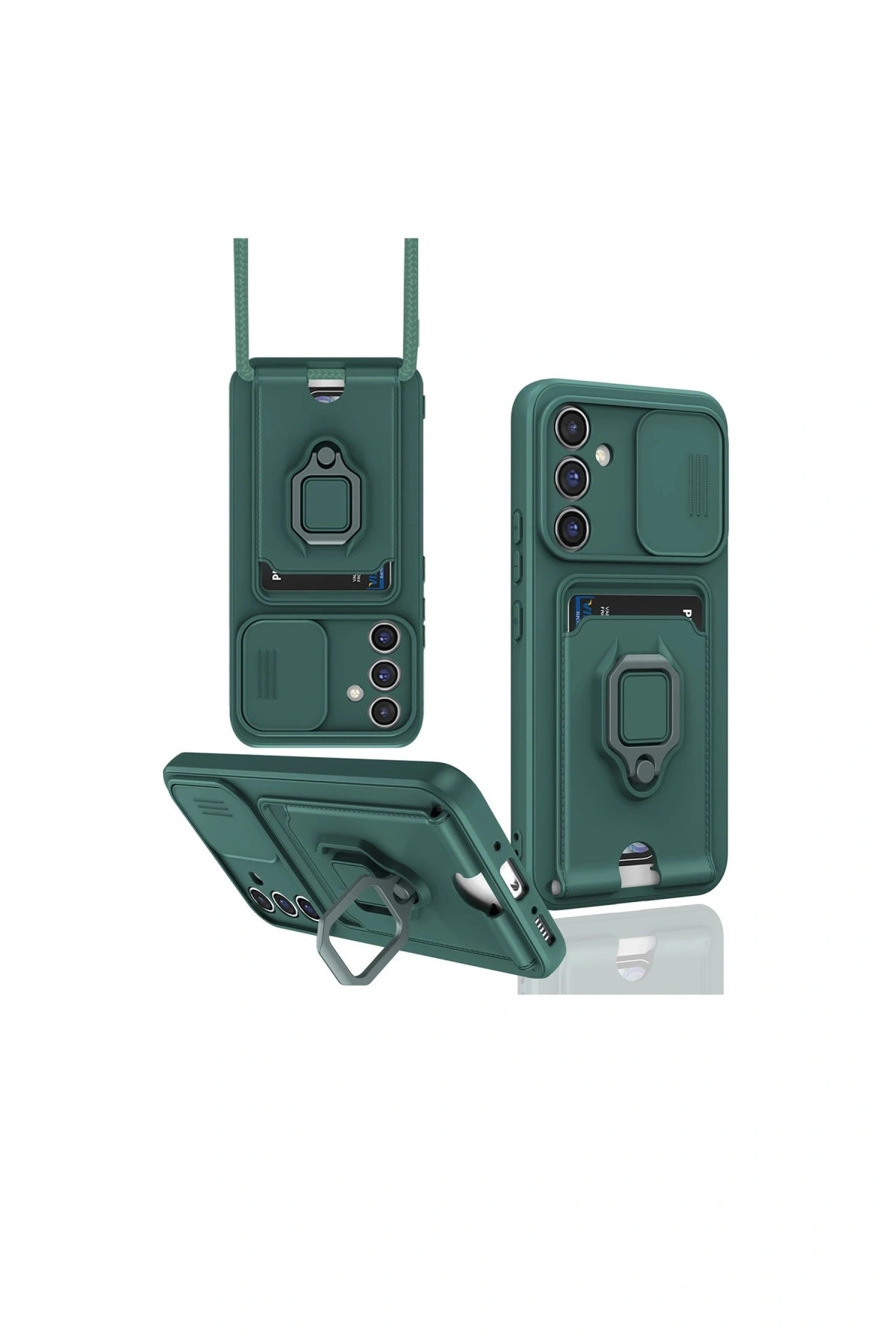 Zuma Kartvizitli Yüzüklü Silikon KılıfKart Bölmeli | Kamera Korumalı | Stand Yüzük Destekli | Soft TPU Tasarım✅ Entegre Kart Bölmesi – Pratik Taşıma Arka kısmında yer alan özel kart haznesi, kredi kartı, kimlik, ehliyet gibi günlük kullanımda gerekli kartları güvenli şekilde taşımanızı sağlar.; Kaymayı ve düşmeyi önleyen yapısı sayesinde kartlarınız her zaman güvende kalır.; ✅ Metal Yüzük Tasarımı – Stand ve Araç İçi Kullanım Kılıfın arkasında yer alan sağlam metal yüzük, cihazınızı video izleme moduna geçirmek için stand işlevi sunar.; Ayrıca manyetik araç tutucularla da uyumlu olup, sürüş esnasında eller serbest kullanım sağlar.; ✅ Kaydırmalı Kamera Lens Koruması Zuma serisine özel geliştirilen kaydırmalı lens kapağı, cihazınızın kamerasını çizik, toz ve dış etkenlere karşı tamamen korur.; İhtiyaç anında kolayca açılır ve kendiliğinden kilitlenir yapıdadır.; ✅ Omuz Askısı Uyumu – Taşıma Konforu Kılıfın alt kısmındaki özel delik tasarımı sayesinde dilediğinizde omuz askısı takarak telefonunuzu çanta gibi taşıyabilirsiniz.; Bu özellik özellikle hareket halinde pratiklik ve güvenlik sunar.; ✅ Premium Mat Yüzey – Parmak İzi ve Leke Tutmaz Mat yüzeyli silikon malzeme, hem şık görünüm hem de yüksek konfor sunar.; Kaymaz yapısı sayesinde elde kolay kavranır, yüzey lekelere karşı dirençlidir ve kolayca temizlenebilir.; ✅ Yükseltilmiş Kenarlar ile Ekran ve Kamera Koruması Cihazın ekranı ve kamera çevresini saran hafif yükseltilmiş kenar yapısı, yüzeye temas sırasında çizilmelere karşı ekstra koruma sağlar.; ✅ Yumuşak ve Sağlıklı TPU Malzeme Esnek yapısı sayesinde cihazınıza tam uyum sağlar.; Hassas çalışan buton geçişleri ile kontrolü kolaylaştırır.; Sağlığa zararlı herhangi bir materyal içermez.; ✅ Canlı Renk Seçenekleri – Kişisel Tarzınızı Yansıtın Pastel tonlarda tasarlanan Zuma serisi, yumuşak dokuya sahip renkli kenarları ve zarif yüzey tasarımıyla hem şıkl��k hem fonksiyonellik sunar.